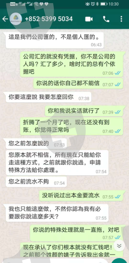 以咨询的名义诱导我用黄金存款进行外汇投机,我先后存入8.8万美元。目前账面利润超过5万美元。 6月17日,我申请了两次出金,每次3万美元,到现在钱都没有到账。账户、各种借口、风控、税务问题、金融监管等。平台原网址为http://RTBFX.COM/ZH-HK。主页可以登录,但是账号不能访问。另一个网站是 HTTPS://RTBhk-fx.net/zh-cn,为黑色平台。请远离骗局,远离骗子!