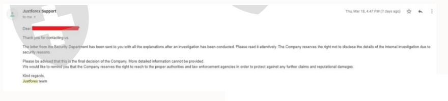 JustForex封锁我所有的交易账户并且阻止我登陆网站。我还留着JustForex的邮件