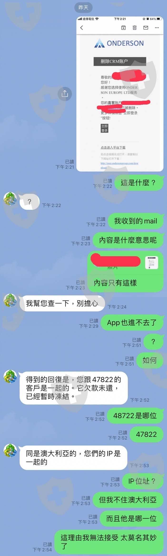 原本公司名aga traders group limited 後來改成https://ondersongroup.com/En/contact叫她出金時說有風控問題,隔兩天就收到帳號被刪除的訊息。理由是找一個我不認識的人的名字說這是我的介紹人欠款,所以凍結我的帳號不出金給我
