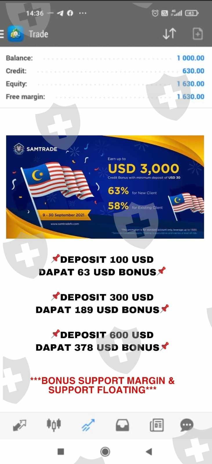 JANGAN GUNA LAGI BROKER SAMTRADE FX . BROKER PALING SCAM DIABAT INI . KENAPA SAYA BERKATA DEMIKIAN ?...YA LAH DEPOSIT 1000 USD DAPAT 630 USD ? KALAU DEPOSIT 100 USD DAPAT 63 USD ?