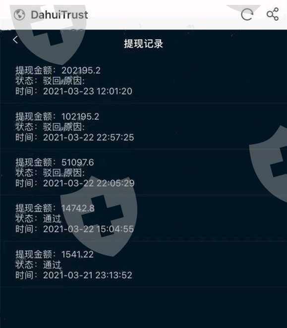 DahuiTrust没有理由的拒绝我的提现!