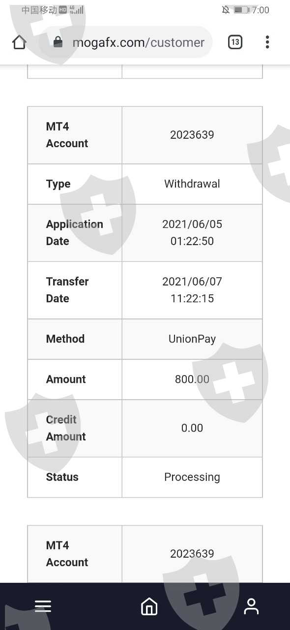 MOGAFX官网4承诺在8小时内到账,但我出金800美元一直没到账。