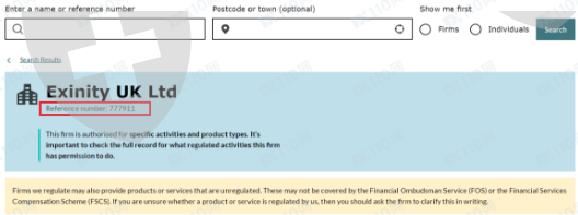 我在英国FCA输入证号777911搜索到的公司为Exinity UK Ltd,登记网址https://www.forextime.com/uk;该平台的网站LOGO、品牌名称,以及宣称的监管信息与合规交易商FXTM富拓相同,经咨询FXTM富拓平台官网客服,核实该平台与他们无关,是假冒FXTM富拓的冒牌公司。