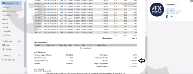 the email FXPRIMUS Completion of Live Account open. Then I normally deposited