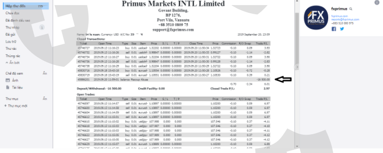 made profitable trade, FXPRIMUS deducted my money for no reason. FXPRIMUS