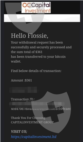 email shows withdraw successful. They