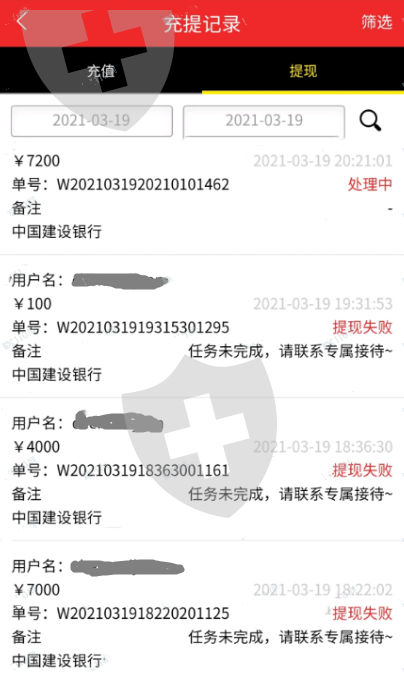 大家一定要警惕这个平台在这里你会一直提现失败,说你没有完成任务,然后那些客服接待员还会一直引诱你借钱继续加本金,今天发在这里曝光他不是请谁来可怜我,是让大家警惕不要再做这个平台了,擦亮眼睛!