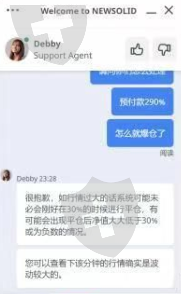 我在新坚固NewSolid平台入金后在该平台交易,然而却遭遇到了平台黑手。在客户账户还有290%预付款的情况下,平台恶意扩大点差,致使我想要加仓7000美元都未来得及就莫名爆仓。