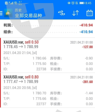 我持有1778点位的空单,浮盈一百多美金,结果在未进行任何操作的情况下,单子被莫名止损。最高点位在1778.66,而我设置的止损位是1780.7。本身盈利的单子却显示的是亏损的数额,让我大为不解。