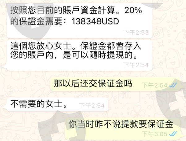 CUW 一直要我充值才能提现!需缴纳账户资金的20%的金额作为保证金才可完成提现。