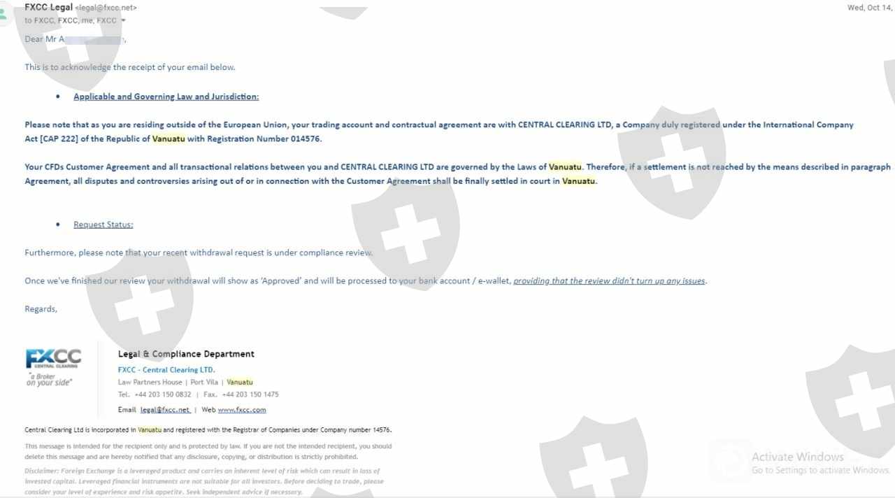 该经纪人以荒谬的理由保留了我的提款请求!起初他们说我的文件不是同一个地址。我给他们发了电子邮件,但他们几乎没有回复我。我试图满足他们向我提出的所有要求,以验证我的真实性。但是现在他们给我发了一封电子邮件,说我的请求正在接受合规审查。这是废话,他们不想同意我的提款!