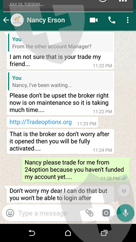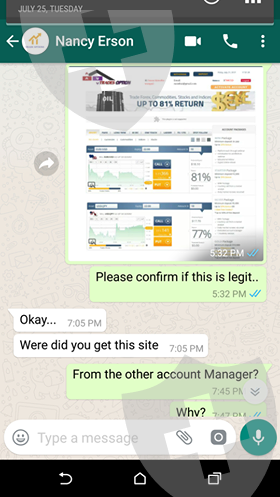她和她的合伙人Tony Mocker是骗子。托尼后来封锁了我的account。这两个美国公民骗了我1500美元,他们声称是专业的二进制交易员,自从我存入的钱,就很多问题,说没收到,然后说会再从新帮我开一个account然后把我存入的钱转去新account,没过多久,我就不能联系他们了。我慌张了起来,然后尝试login进去我持有的account,发现已经login不进去了