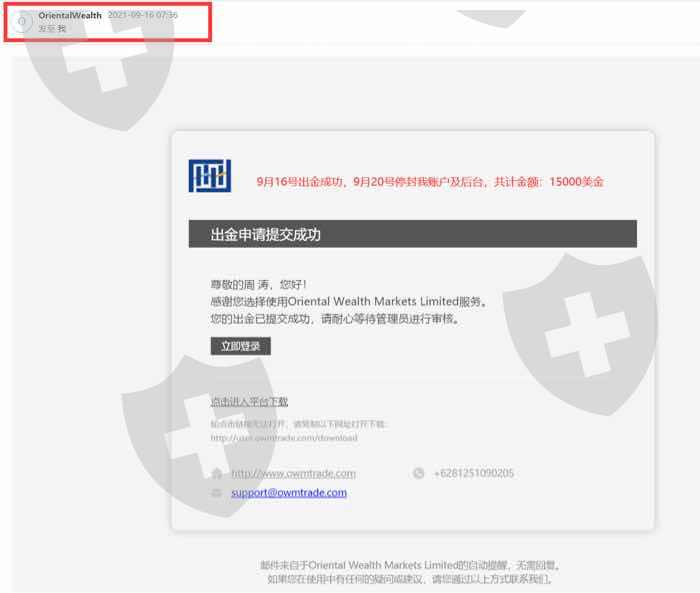 本人入金3000美金,前面盈利共出金13000美金,9月20号收到平台通知,说我账户违规操作将20号订单视为无效,如果业务员说除了20号的订单其他资金明天可以申请出金,结果21号就被禁止登陆,希望各位投资者擦亮眼睛!