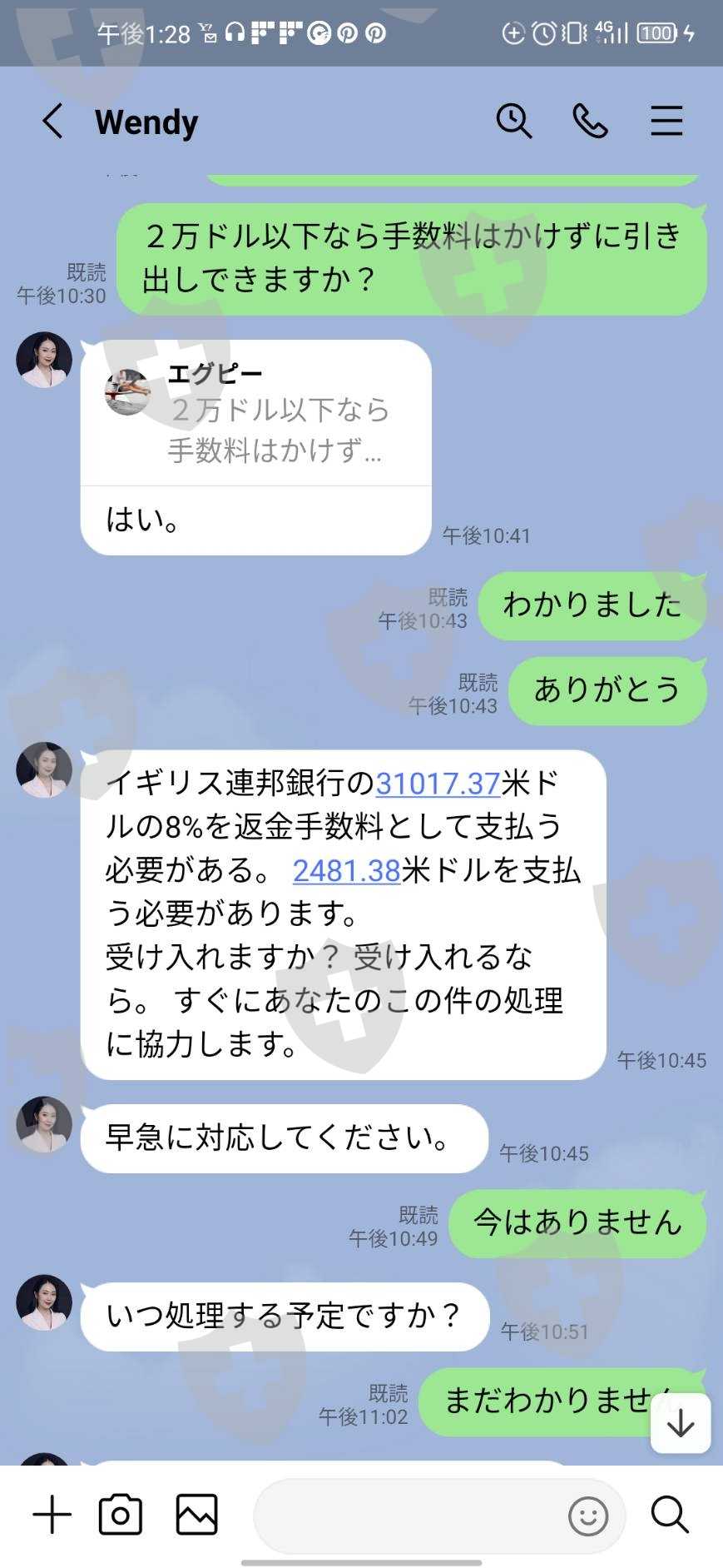 この時、担当のwendy さんは、資金を引き出しをするのに、これ以上はかからないと言ったのに、次は、イングランド銀行に資金が移ったが、引き出しをするのに資金の30%かかるといわれた。