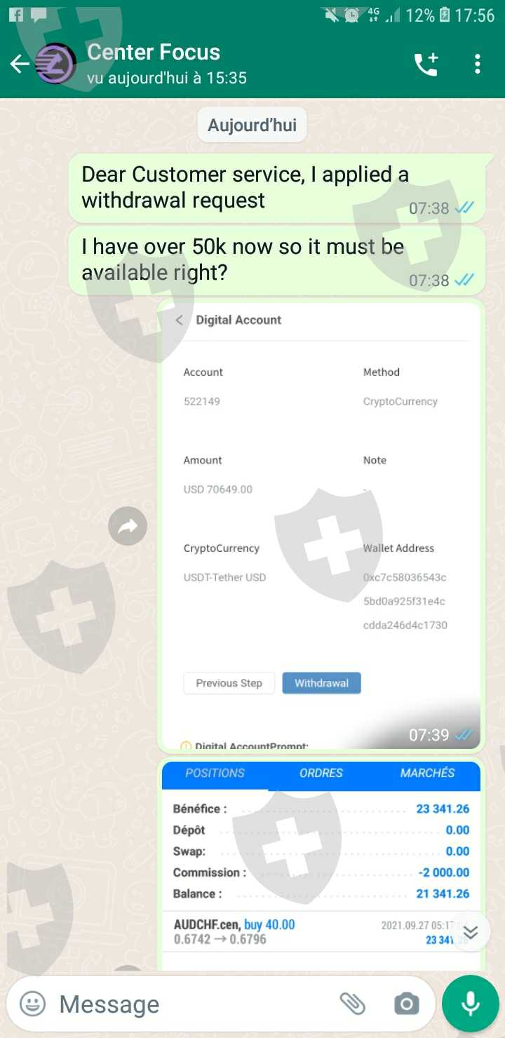 Center focus要求我先完成一笔 50k 的交易才能出金,现在我已经达到了70k,又说要支付 12% 的税才能出金。