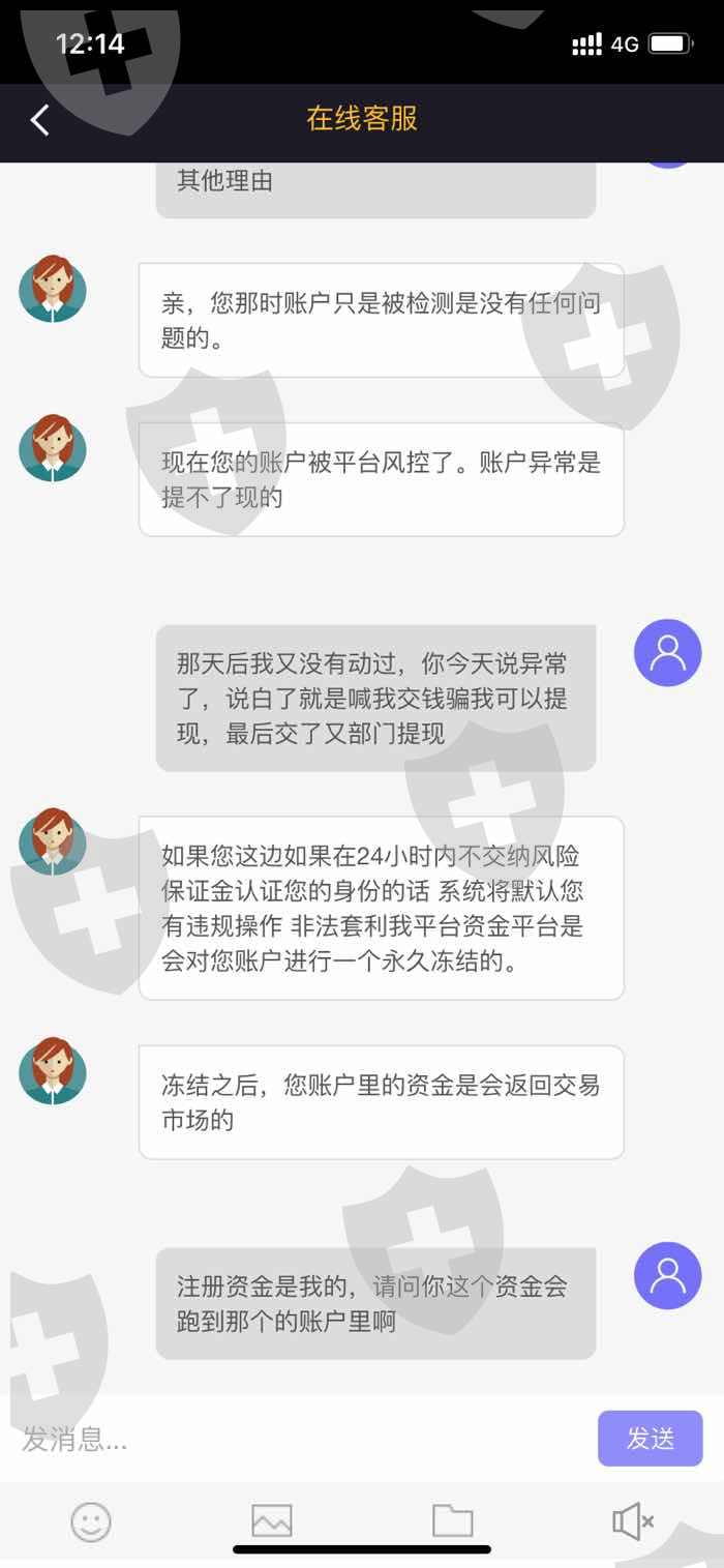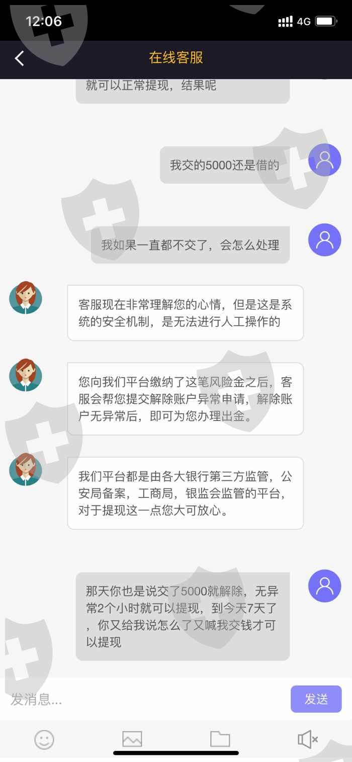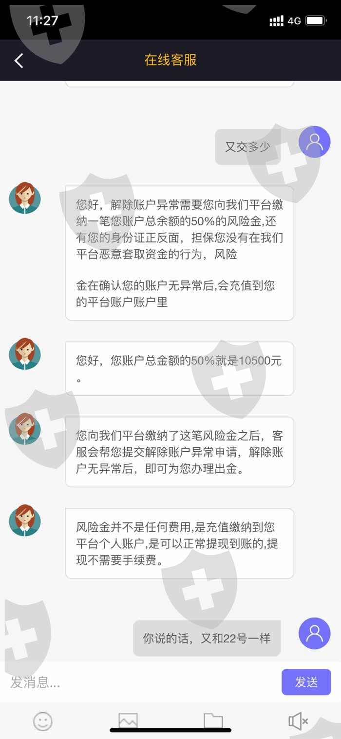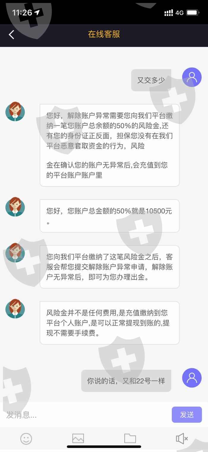 不能正常提现,我认识一个微信朋友,听信她入了8000的资金注册瑞讯交易平台操作。操作完了提现瑞讯平台说我卡有问题,需要交5000的保证金解除风险,然后等29号今天可以提现,今天29号又喊我交10500元才能提现