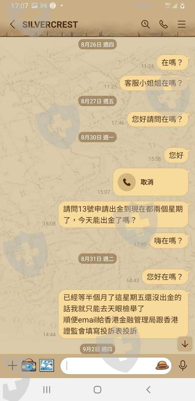 8/31寄email到Silvercrest的信箱依舊無任何回應