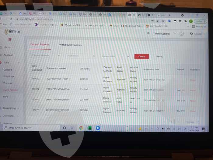 我今年七月~八月底分三次分别入美金2115,2317,8009。9/7第一次提现13465,提到我的coinbase账户,提交后,客服告诉我已成功。结果我的coinbase账户迟迟没有收到任何进账。与客服交涉基本不回复,或者让我等待。9/13我突然收到邮件,提现金额全额退回到bKYHYO账户里。客服的解释是网络不好。