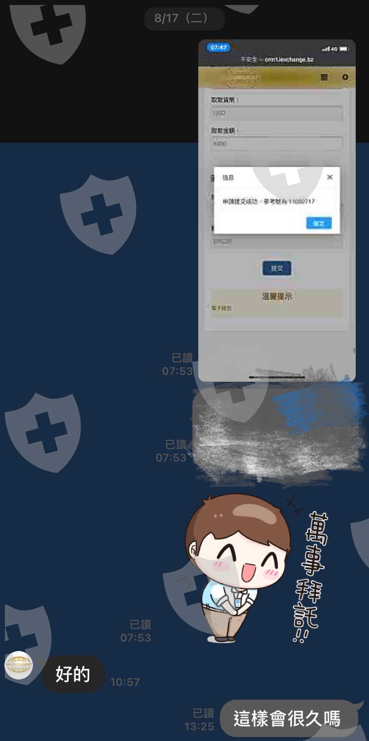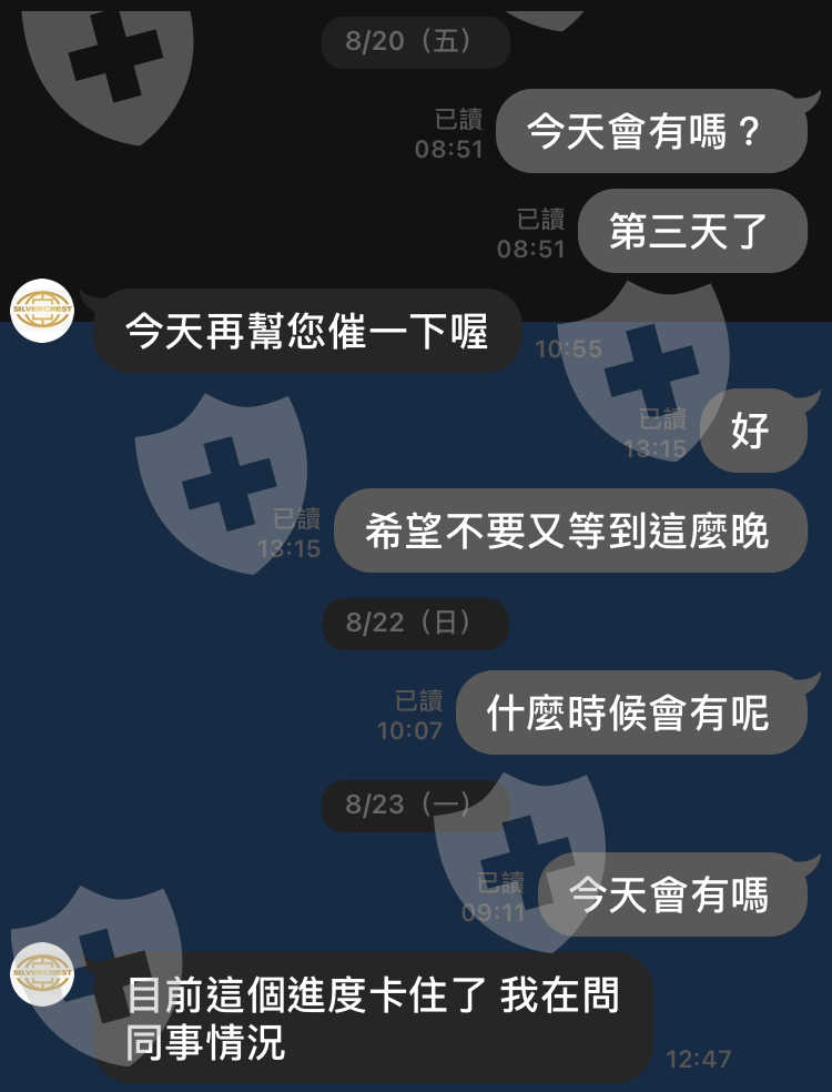 8/17 申請出金8/18 送審8/23 表示流程卡住9/6 提出第二次申請出金9/13 開始失蹤,不讀不回