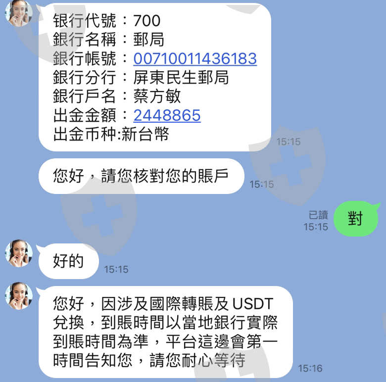 前兩次有成功提領,第三次一直找藉口不出金,詐騙集團