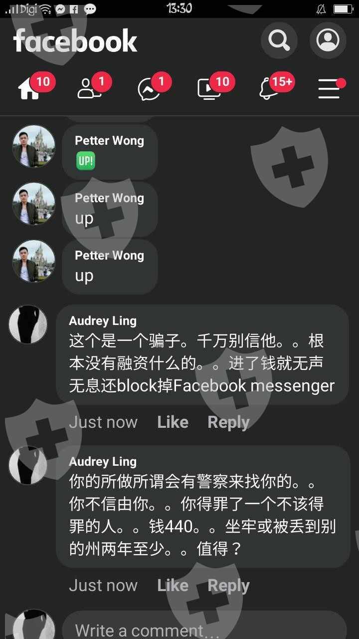 此人是骗子!!进钱后就block WhatsApp 和messenger!!千万别信他,我被他骗了,马来西亚骗子!!