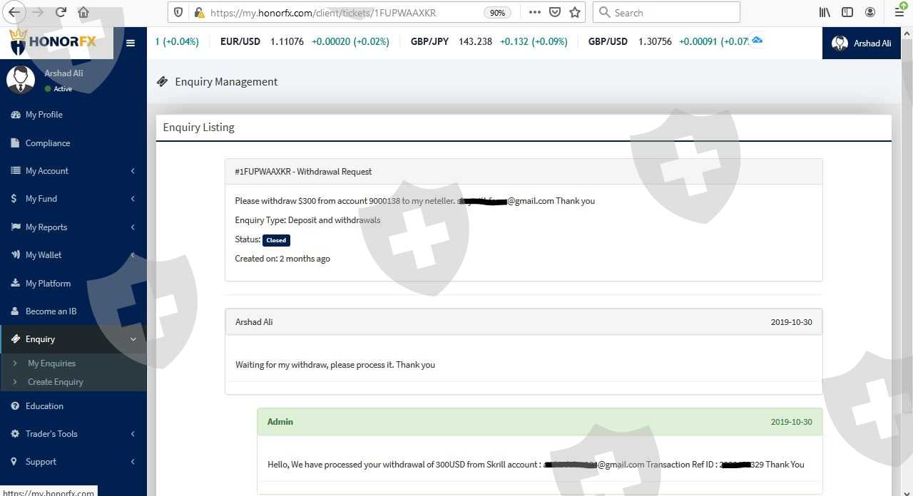 Withdrawal Pending Account 900206 Honorfx.com Scam