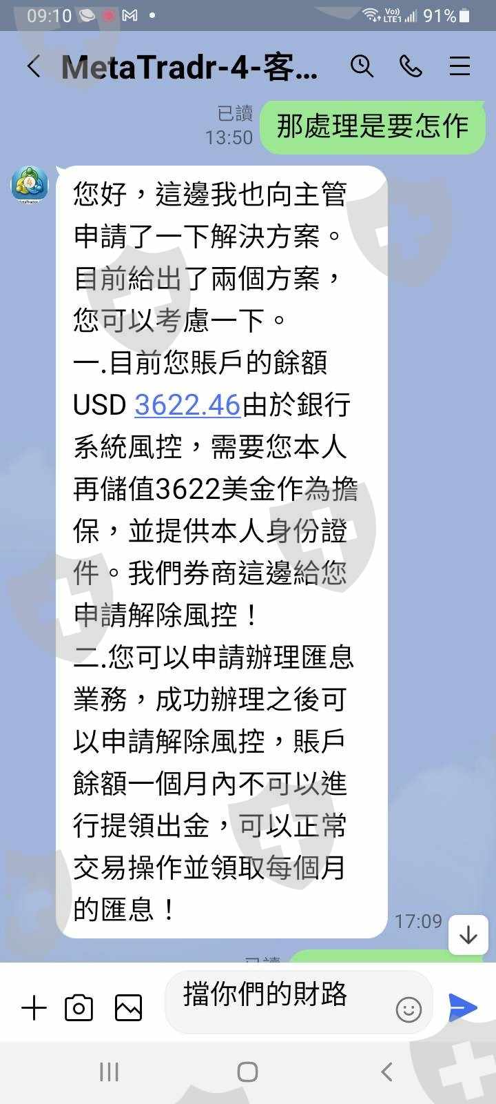 我的狀況是給你出金2次/然後就藉口審核不過/扣你一個非法交易的帽子/然後要鎖你帳號逼你入金解除鎖定/另外還被我發現操控指數波動借機讓你爆倉在要求你入金