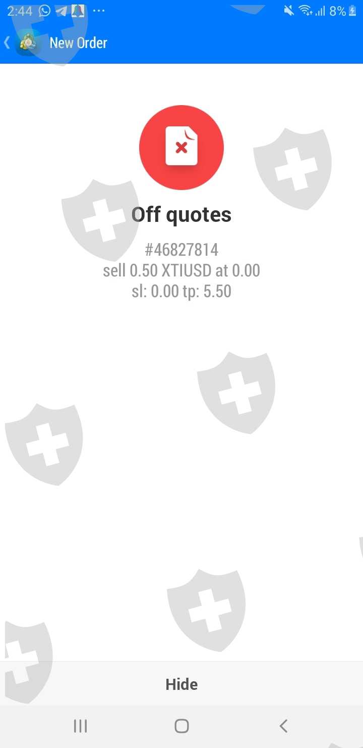 icmarkets fault i now trade on xtiusd sell when my trade is one profit i am enable to close the trades in profit its shiw mesge the quotes suddenly after some minute my account wash plz check screenshot and refund my account with profit.