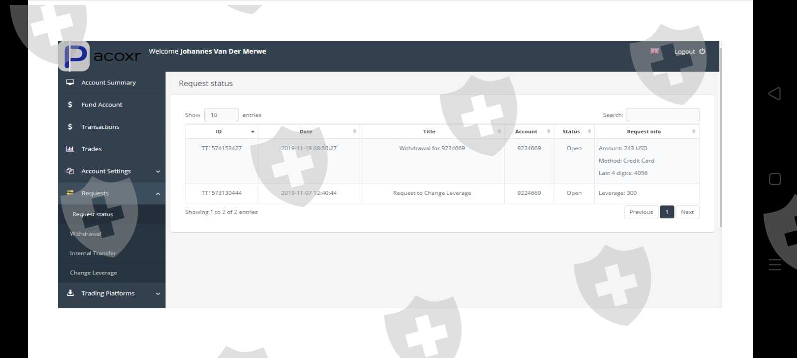 埃迪·拉扎里 (Eddie Lazary) 给我打电话介绍关于名为 IG Groups 或 Mini Groups 的交易,其中Pacoxr.Com 提供一个合格的经销商,该经销商可以为一组中的 50 名成员进行交易。请参阅以 PDF 格式附在电子邮件中的证明。入金金额最低为 250.00 美元,我觉得这很有吸引力并转账了。由于 BTC 的成本,它的价格低于250.00 美元的Pacoxr.com 帐户。请参阅随附的PDF证明。