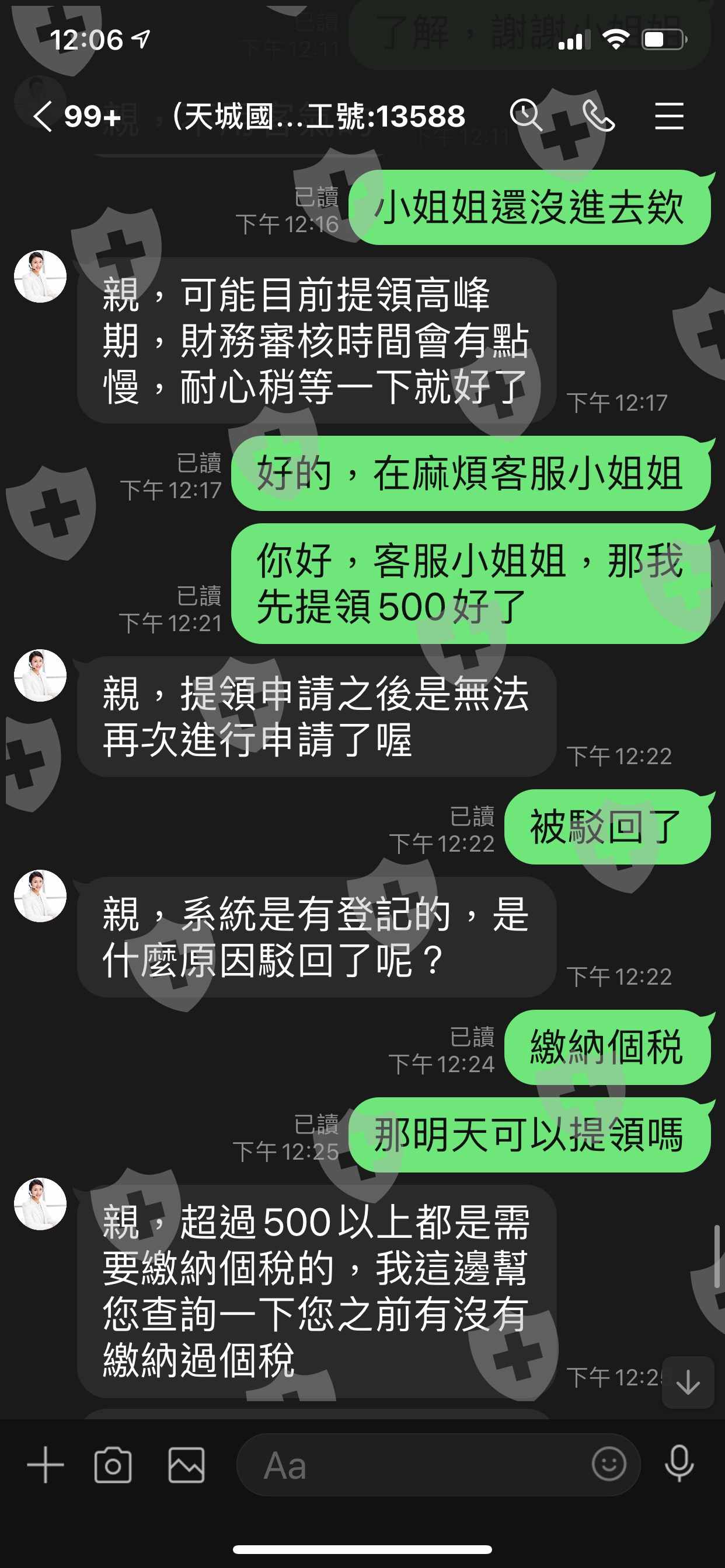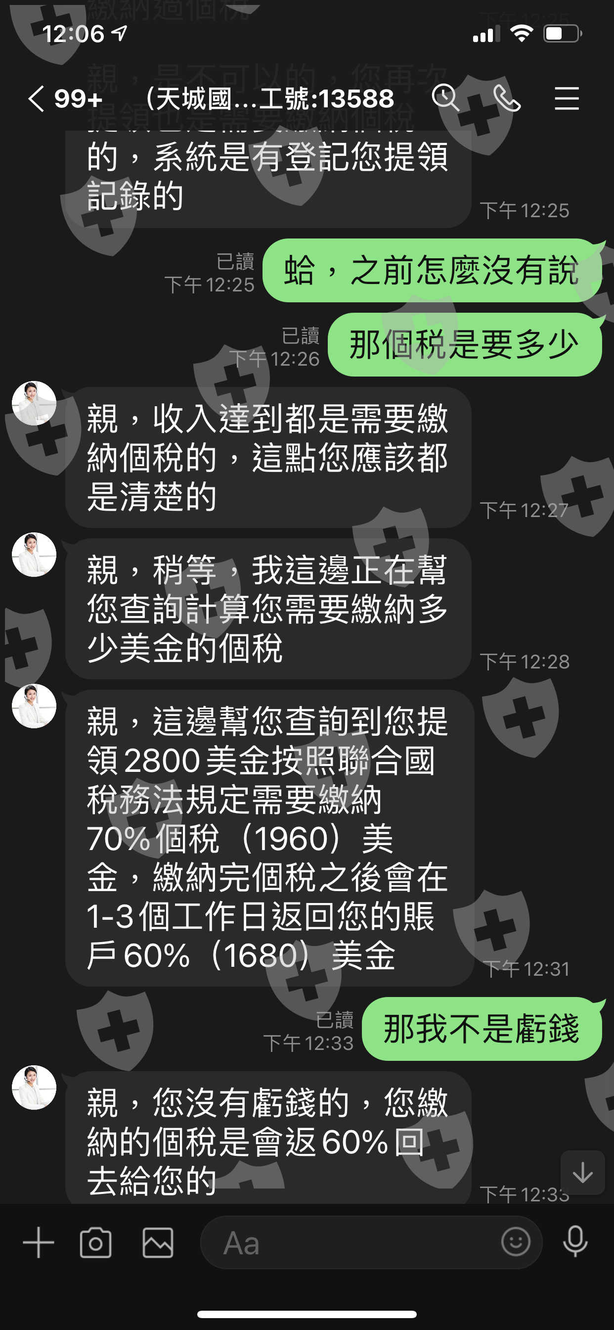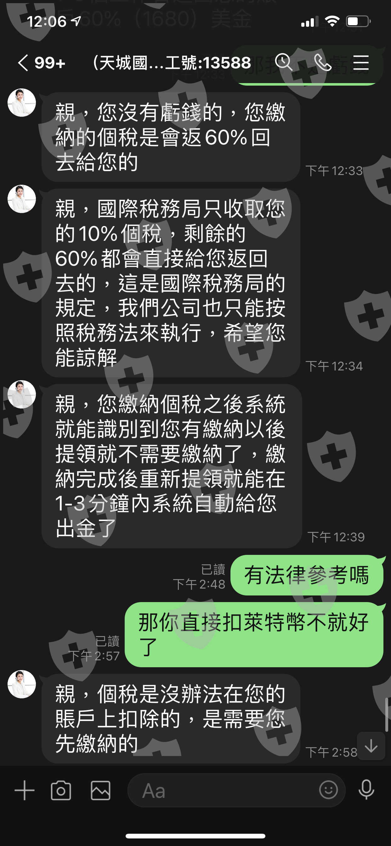 天成國際無法提幣,告知需先繳納70%個人所得稅,事後再退還60%美金於天成國際帳戶內,沒有繳納個稅,不肯出金