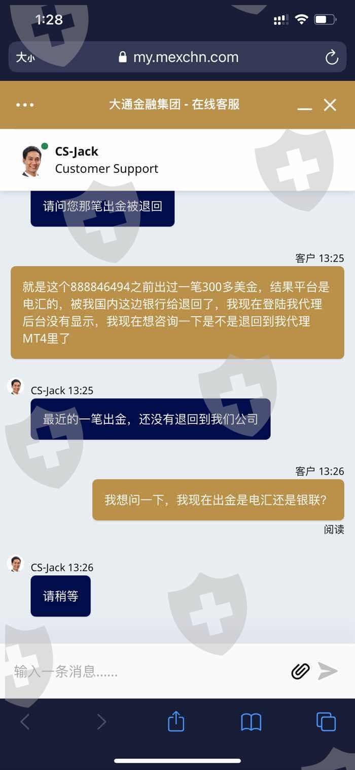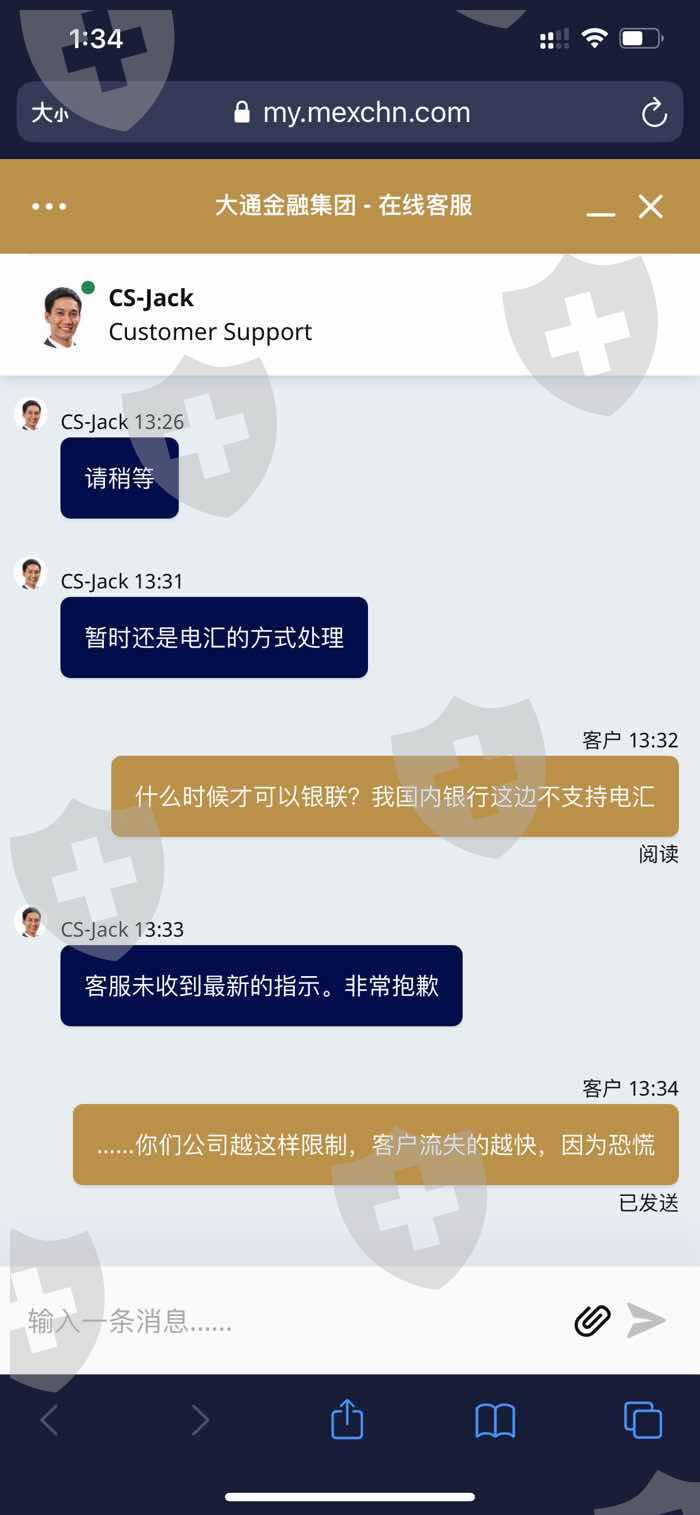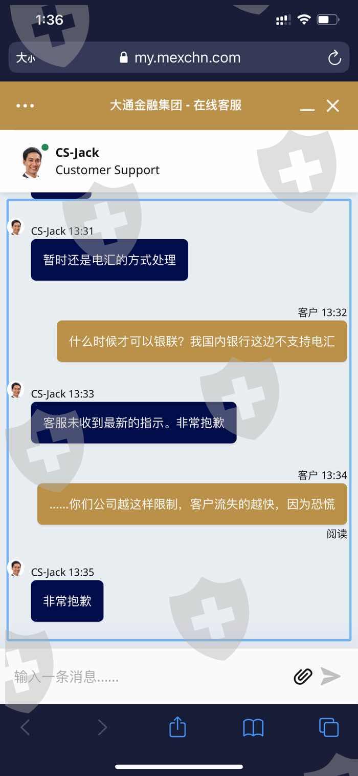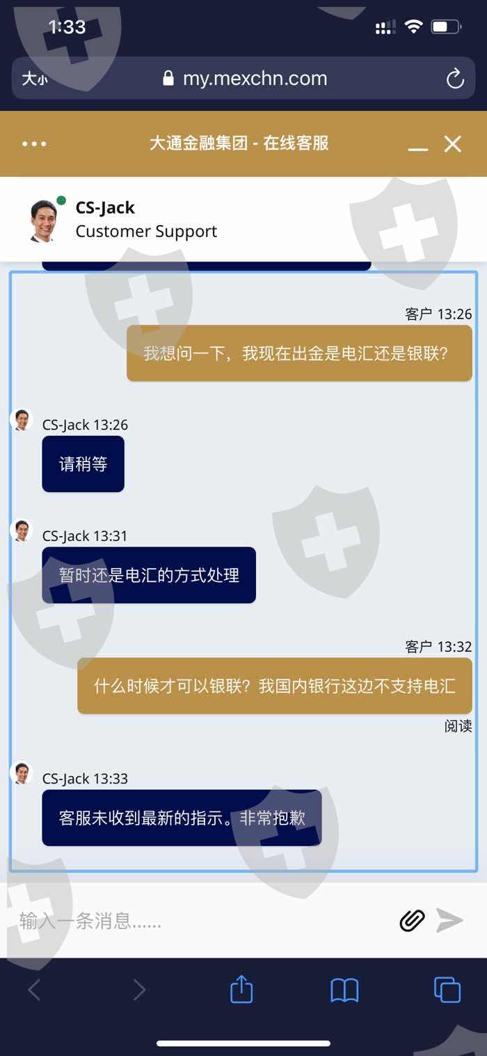 大通金融MultiBank group不给出金,入金人民币,结果给我们出美元,中国地区很多银行是不接收美元的,现在连美元也不给出了。每次咨询客服,客服就说抱歉,没有接到通知。目前已经申请出金一个多月,也不给出,希望有关部门能出面审查一下。