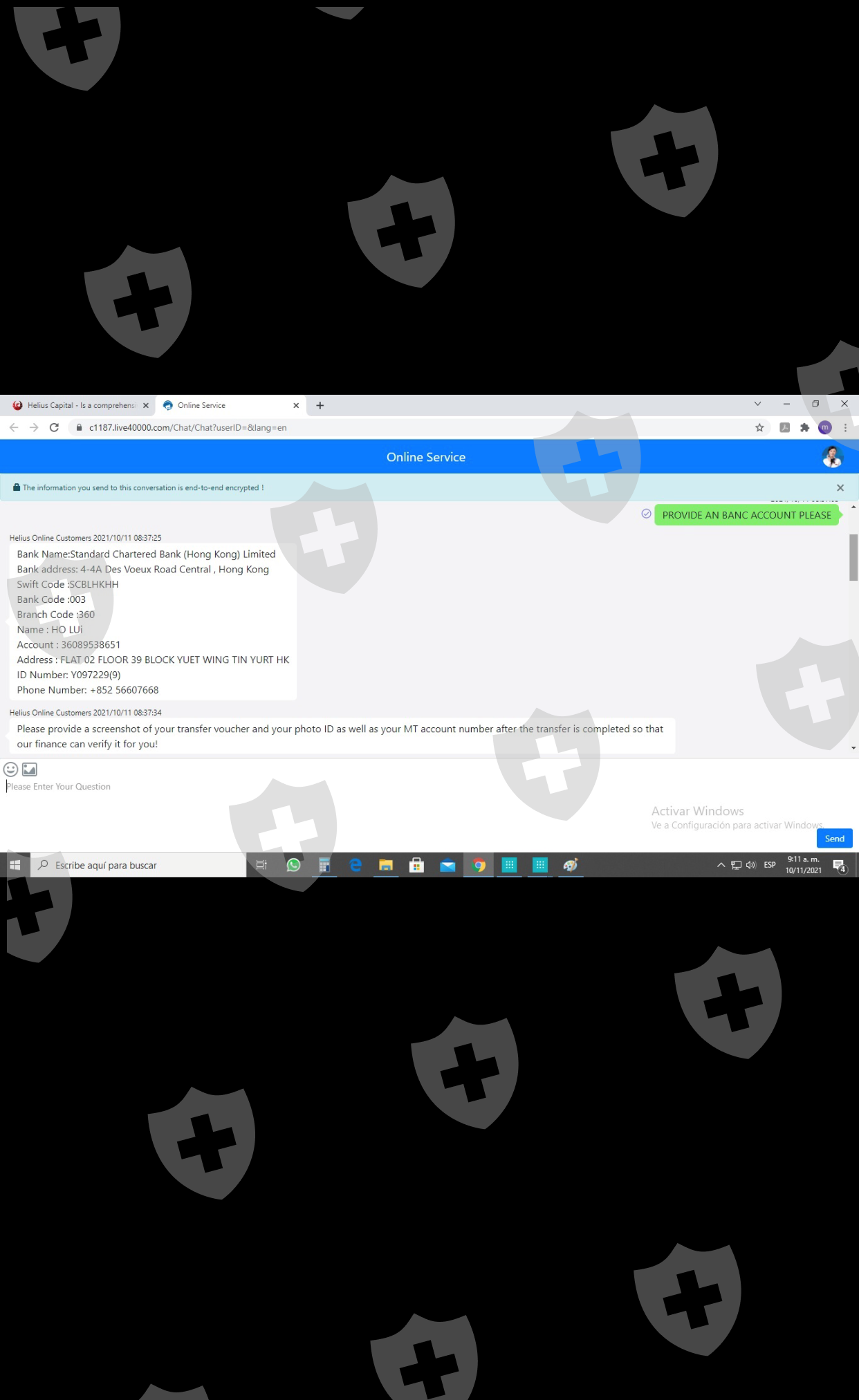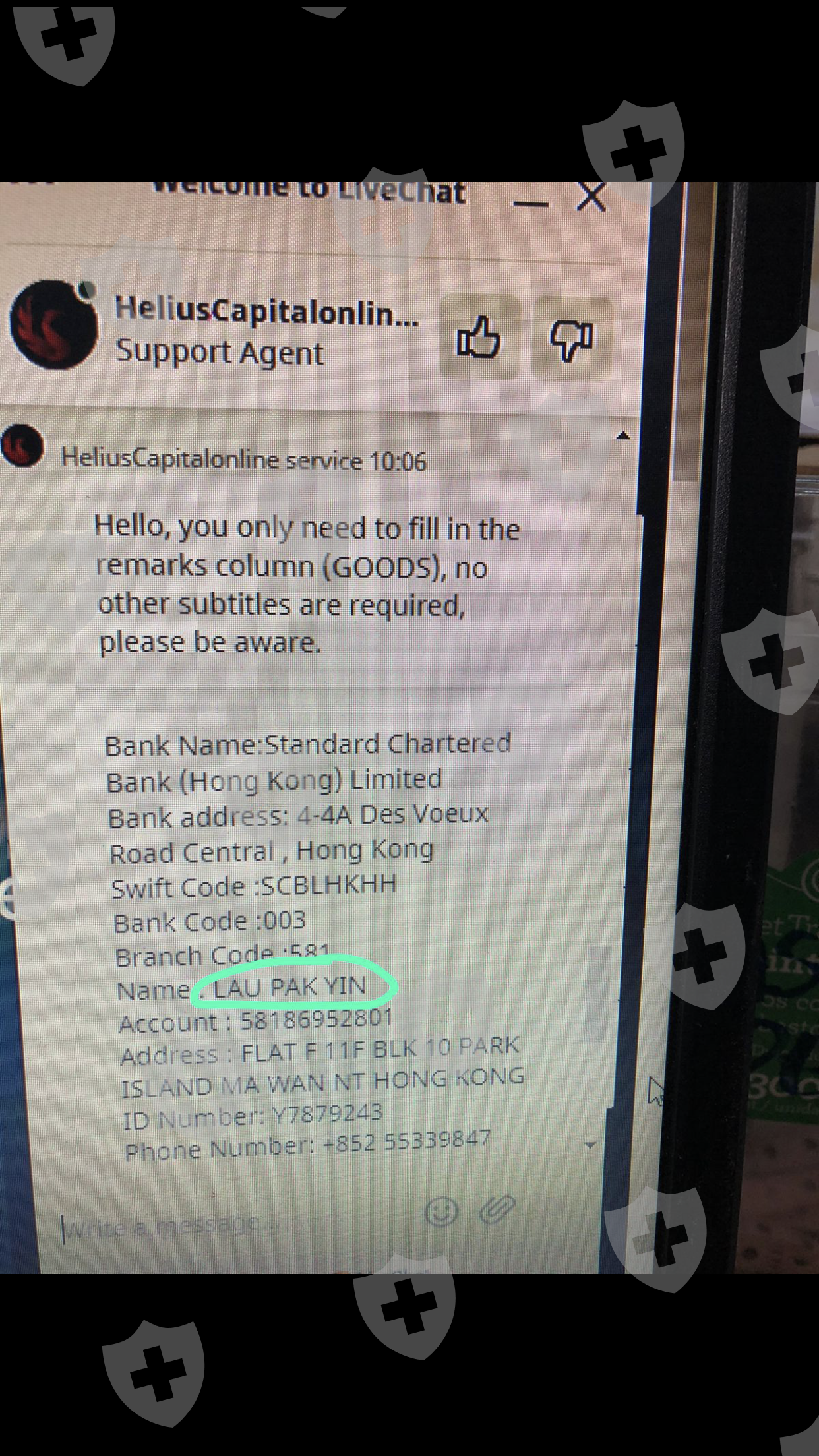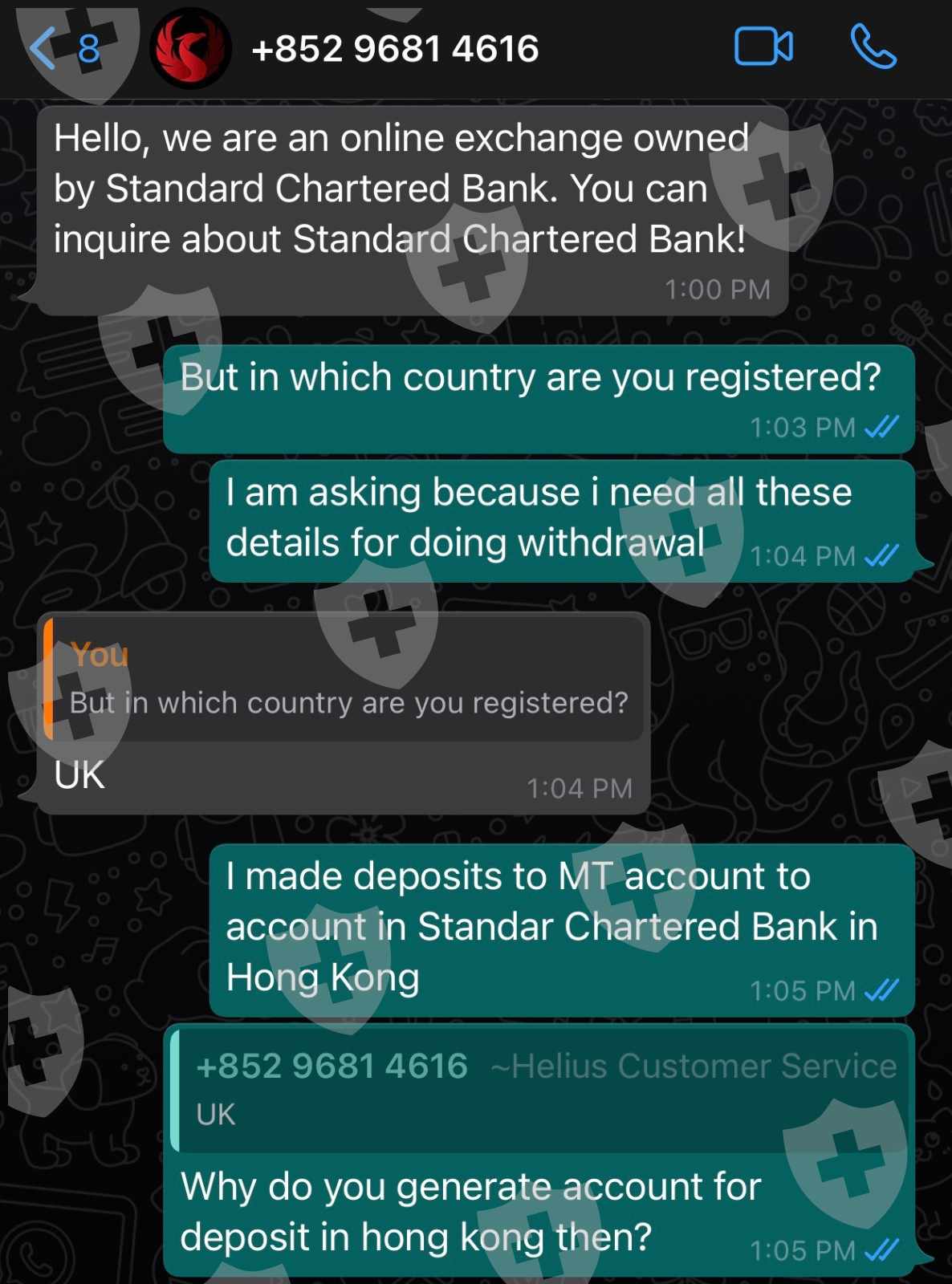 Helius Capital是虚假交易商,该交易商没有监管,可能来自香港或美国,它不是在英国注册的,绝对不属于渣打银行,他们要求您存入香港渣打银行的个人账户,并输入:“个人费用”(非常可疑)。