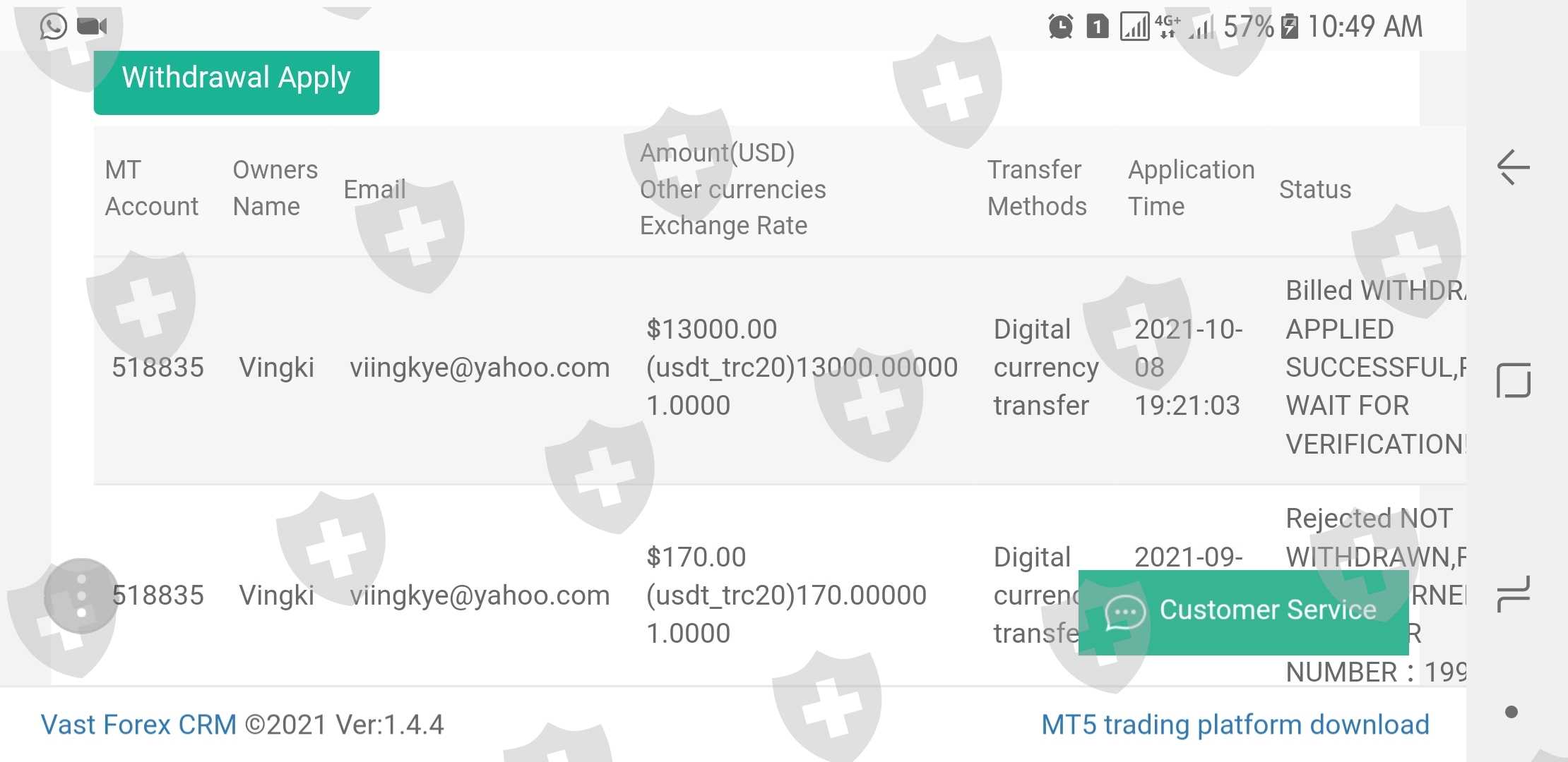 你好,我在Vast Forex入金$7000-$8000,当我有利润时,我想提款,但他们要求我先纳税,转移了我的资金,他们可能是骗子吗?他们说如果我不交税,我的账户会被冻结,已经过了一周了。