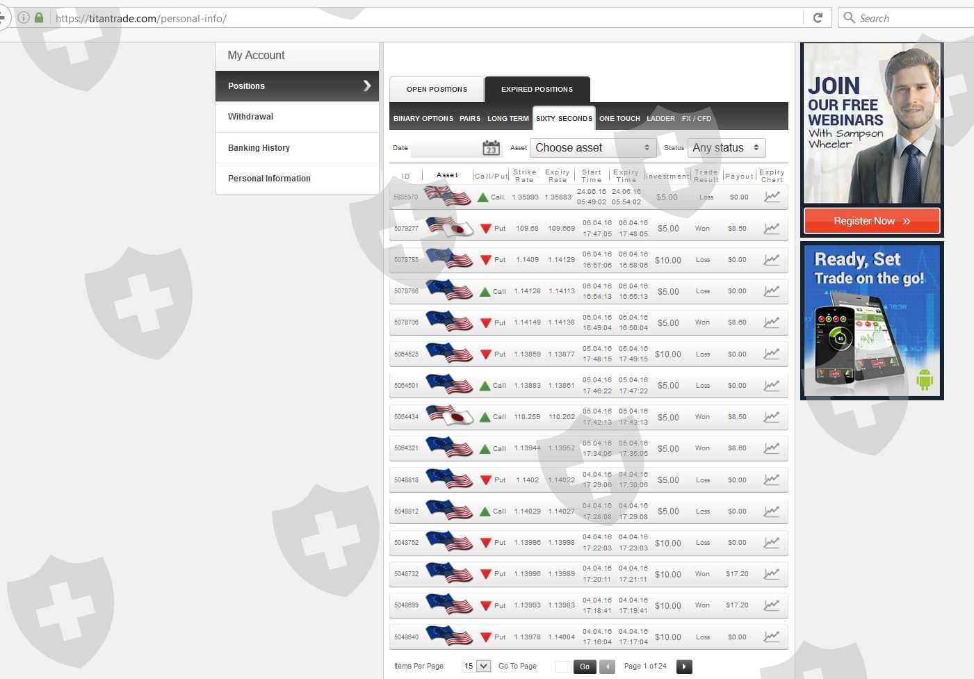 All this begun on July 2015. My father bought a robot for trading which advised to put money on 4 different platforms so that loses can be compensated and one of this platforms was Titan-trade. As soon as titan-trade account was opened and 250$ was deposited he received call from Svetlana Titova ( i guess it was well know fraudster Tatiana Pintus) who said that robot is bad if you want to earn more money you should work with real forex “guru”J. We have complain for 60 year old persons who get.