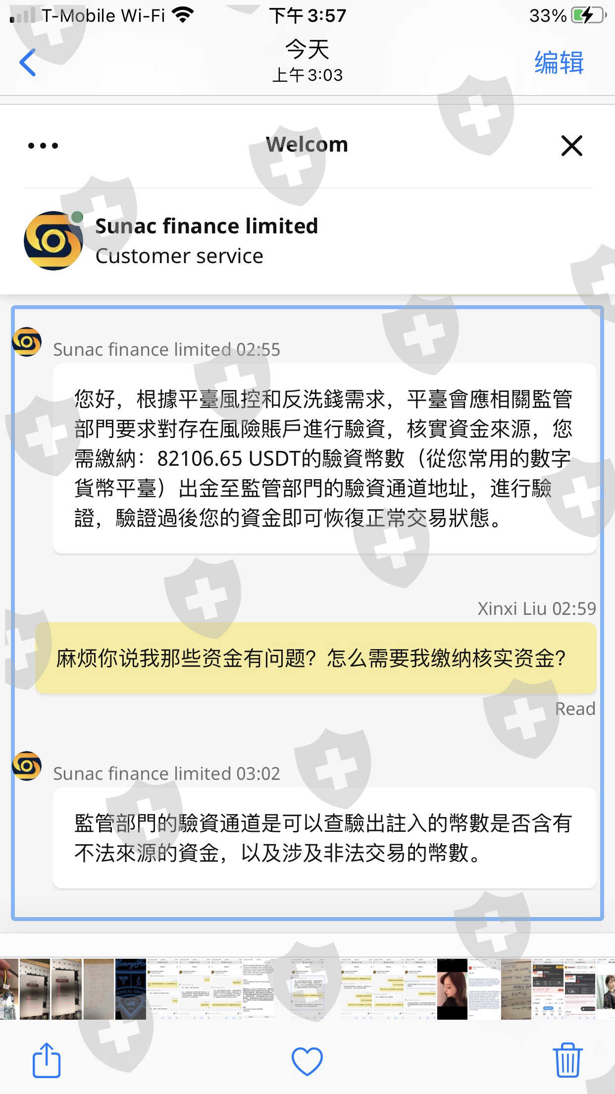 黑平台现在无法出金,开始是这个女的跟我称兄道弟引导我买金让我改善生活,第一次挣钱了700多出金只需要半个小时,第二次出金5万的时候就说需要24个小时,但是出金失败了,接下来就一直无法出金。然后就说你的帐户有异常给冻结了,然后客服就联系说要交8万USD验资资金来解冻。开始这个女的在WhatsApp跟说她和她闺蜜从来没有这个问题,第二天就跟我说她闺蜜确实有这个问题,需要我交了钱认证身份就可以