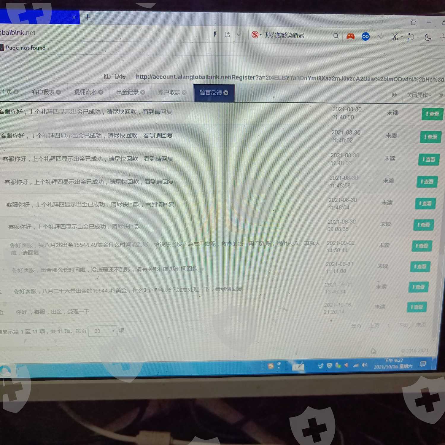 无法出金,从9月10 号,出金都没受理,给平台留言也不回