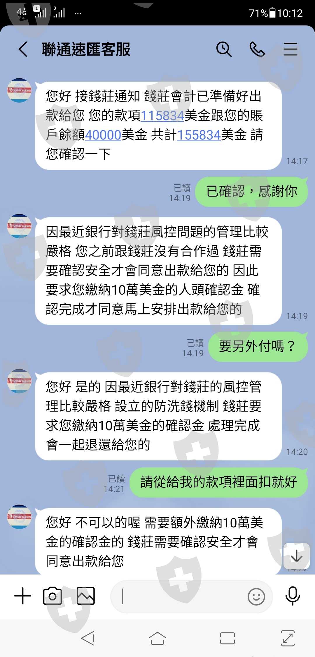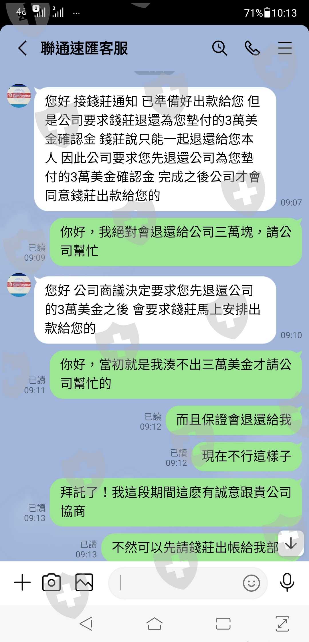 剛開始要求出金說我銀行帳戶填錯,我認了!說要繳錢我也繳了!之後要求出金說我的帳戶有問題又要繳錢,我也乖乖配合,後來又說公司帳戶有問題,錢要給錢莊出帳,但錢莊要求要十萬美,我跟公司協商,他們說會幫我墊付三萬美,我付七萬美,我最後也繳了!今天說好要出帳卻要我先還那三萬美才能出帳,我已經卡了6百多萬臺幣了!請平台幫忙