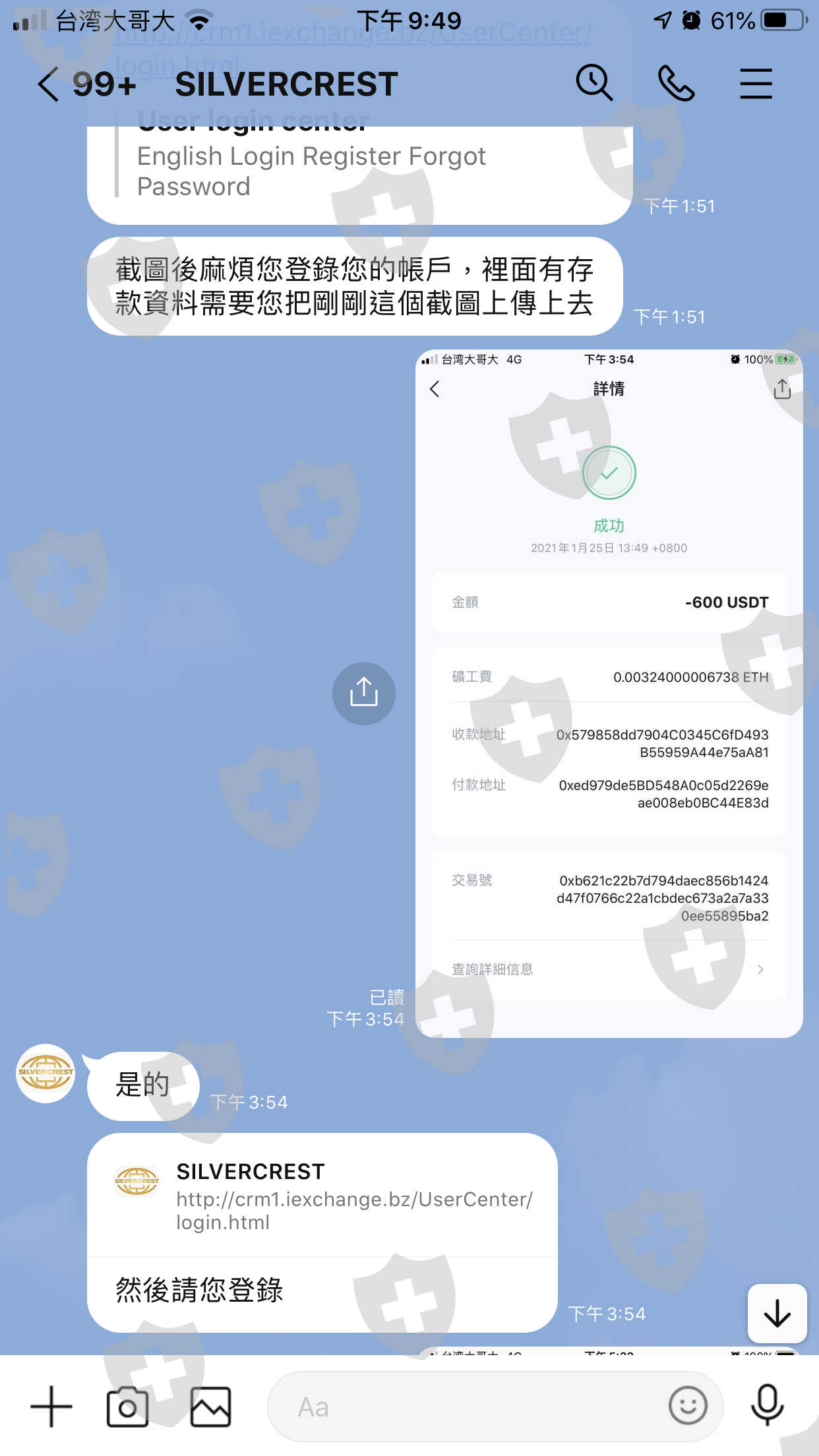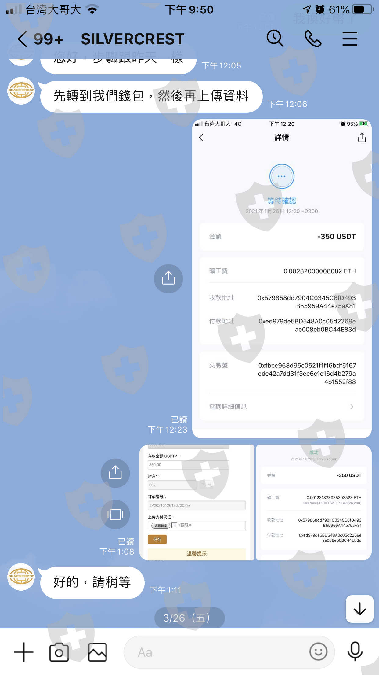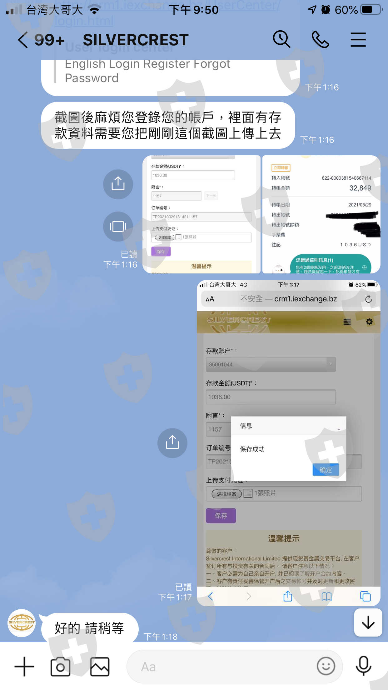 6/1Slivercrest表示其伺服器遭駭客入侵,需較長審核時間,隨即詢問華爾街投資顧問公司,其表示原本助理已離職,會分配新助理跟進,期間一直詢問出金進度,都只回答在審查中