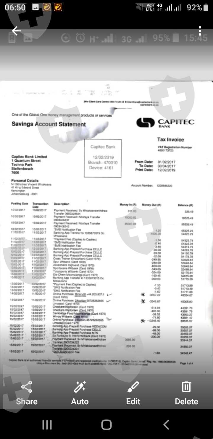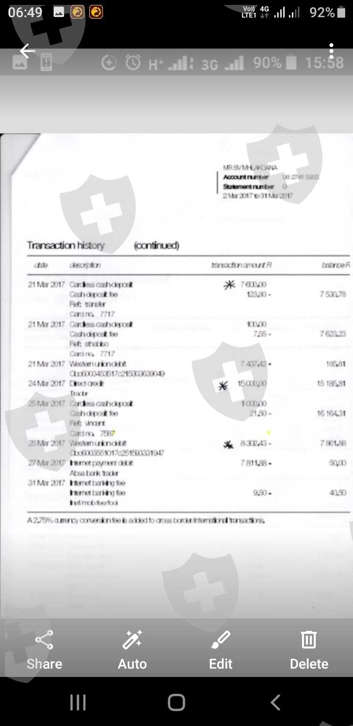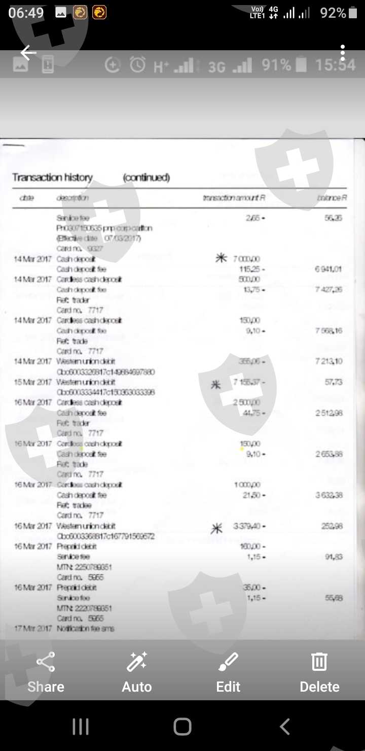 I do have proof of payments for all transactions as per attached bank statements reflecting all their names and transactions marked with a *