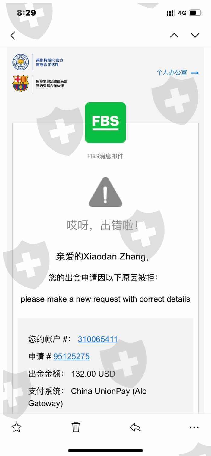 FBS平台网址是https://fx-fbs.cn,多次拒绝我的出金申请,哪怕我账户的资金只剩下132美金,他都会以各种莫须有的理由拒绝我,按照他们的意思就是填写当时入金的农行卡账号,农行卡开户行,他们都是一律拒绝。我转而通过SKRILL方式申请出金,他们又要我选择银联,我再次银联出金,他们又是拒绝。我要求平台马上毫无理由的给我剩下132美金都汇到之前的农行账户上去。