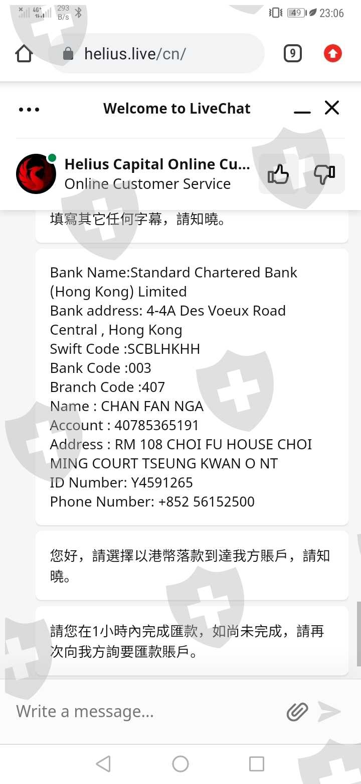 这个网站就是个骗局,第一部 男的加你instagram 然后说自己在加拿大生活 经常找你聊天 问好 ,后来问微信或者whatapp。第二部 经常发给你看 ,教你投资,说回本很快,很容易赚钱 。 第三部 教你注册 mt5 然后教你入金。叫我去helius/pro 上 问怎么去入金,汇款。他的目标是让你赚一点点 然后叫你多放点钱 回本更快。我后来觉得 这个网站很奇怪 怎么会汇款到私人户口 去网站搜索的时候 发现 这个网站是个骗局。问那个男的 就不回 直接拉黑,根本联系不上 。到那个网站也一样 根本联系不上 把你拉黑。跑路。也根本拿不到钱。。后面照片就是哪个骗子 让你掉坑。