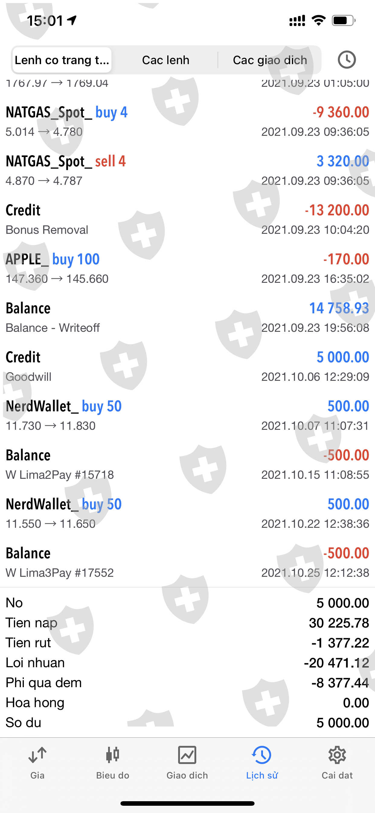 Ngày 23/09 tài khoản của tôi bị cháy ,Và tôi có khiếu nại ,họ bỏ vào tài khoản tôi 5,000$ .Và hứa sẽ có lãi ,nhưng tôi yêu cầu trả đủ vốn của tôi là 15,000$ nhưng họ không cam kết .Và đe dọa nếu tôi tiết lộ thông tin cho bên thứ 3 thì họ sẽ lấy lại 5,000$ và kết thúc giao dịch.Tôi chỉ muốn lấy lại 15,000$ của tôi.Tới nay tôi chỉ nhận về 1,000$.Xin hãy giúp tôi, tôi nghĩ họ kéo dài thời gian không trả cho tôi.5,000$ này tôi không rút về được .