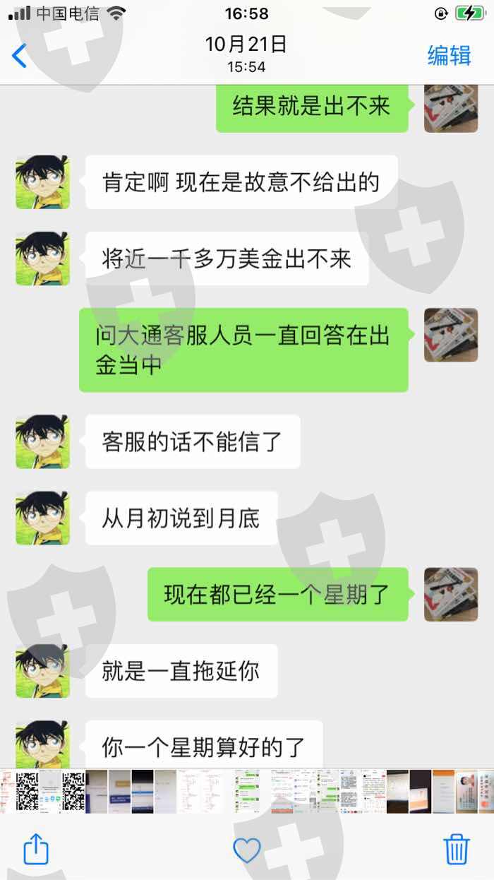 最近大通金融有问题,无法出金,黑平台,希望大家不要上当受骗