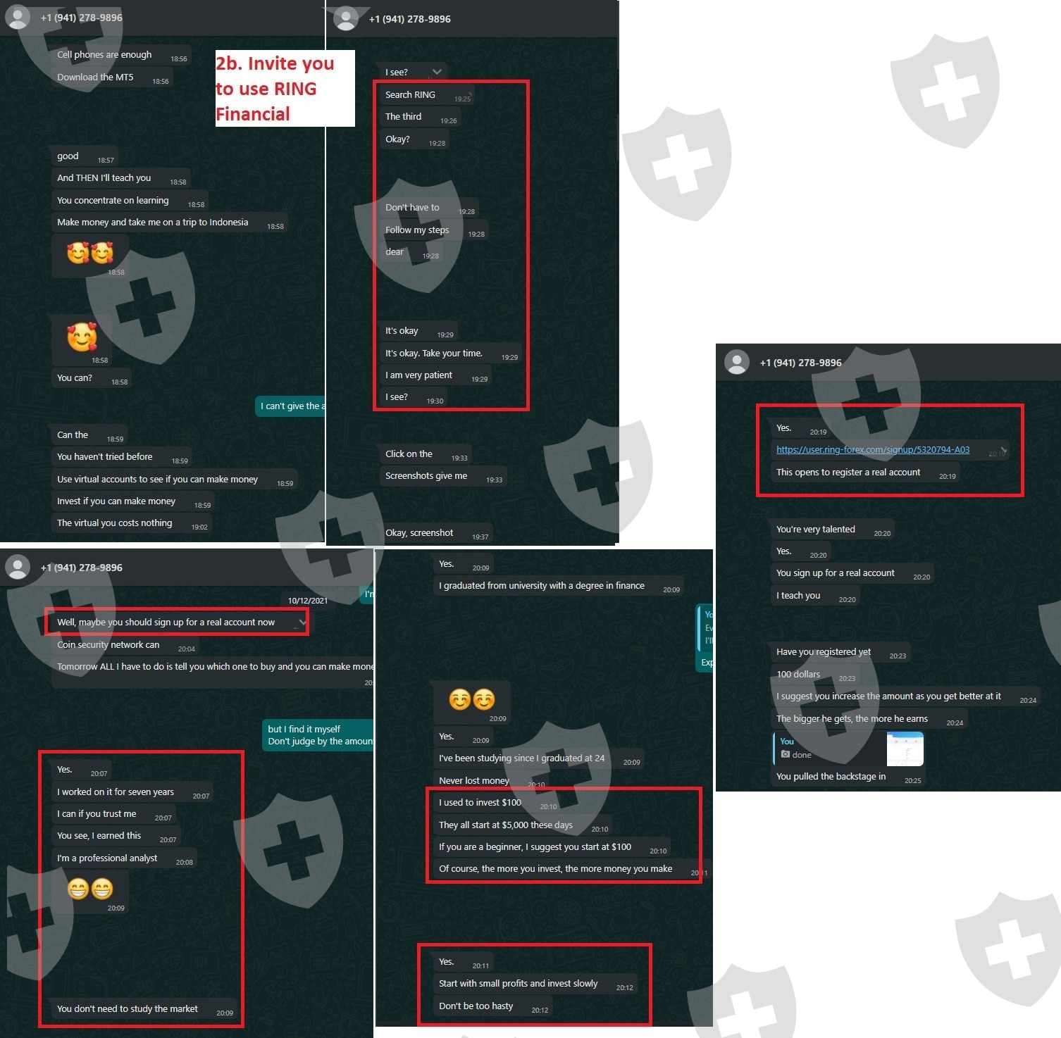 2.骗子会扮演受害者并试图尽快赚钱,然后邀请您使用Ring Financial。