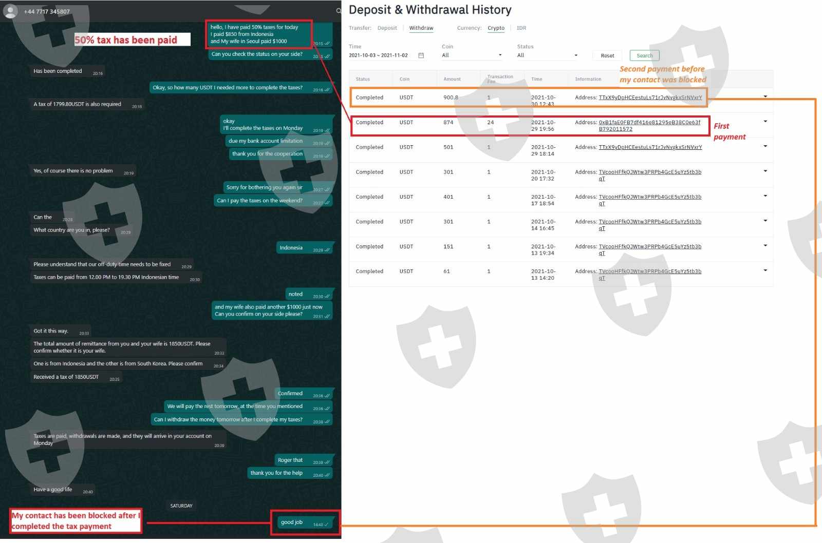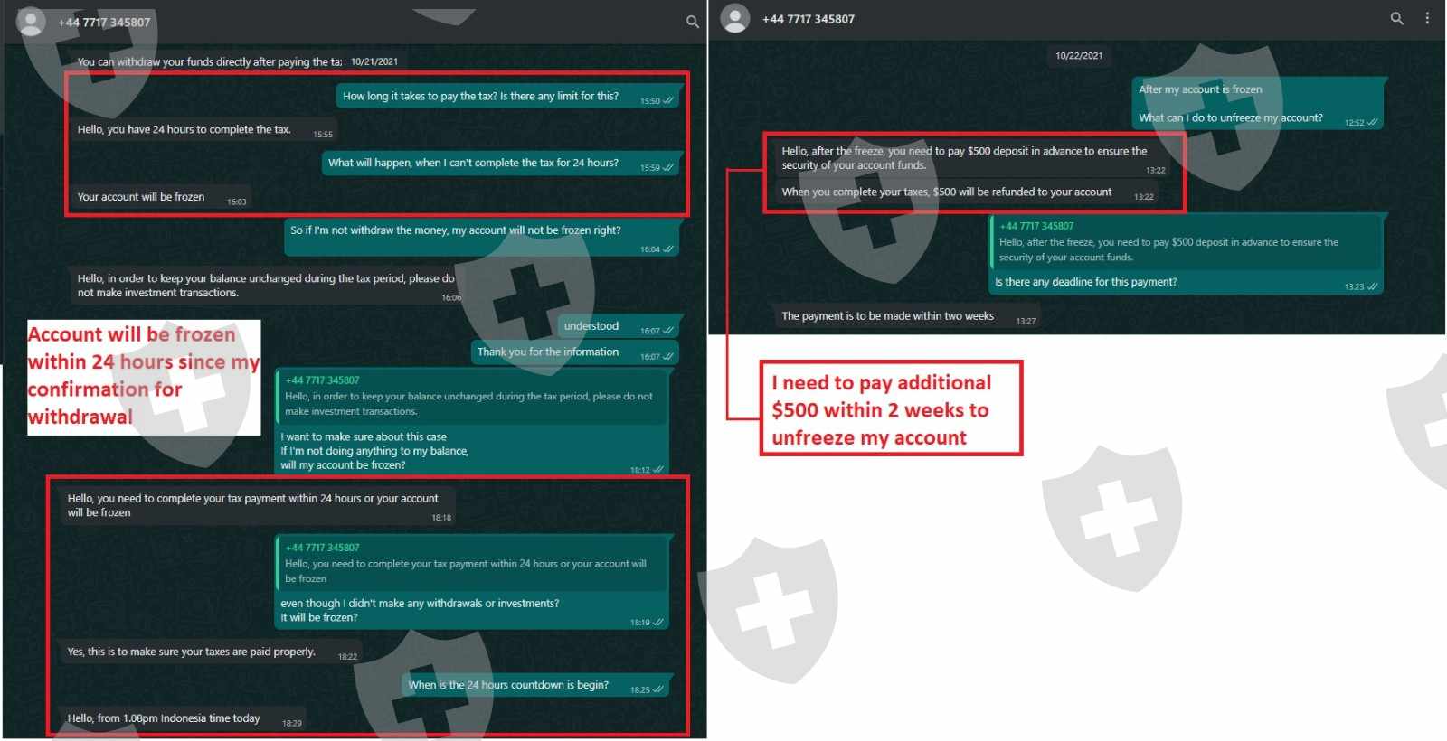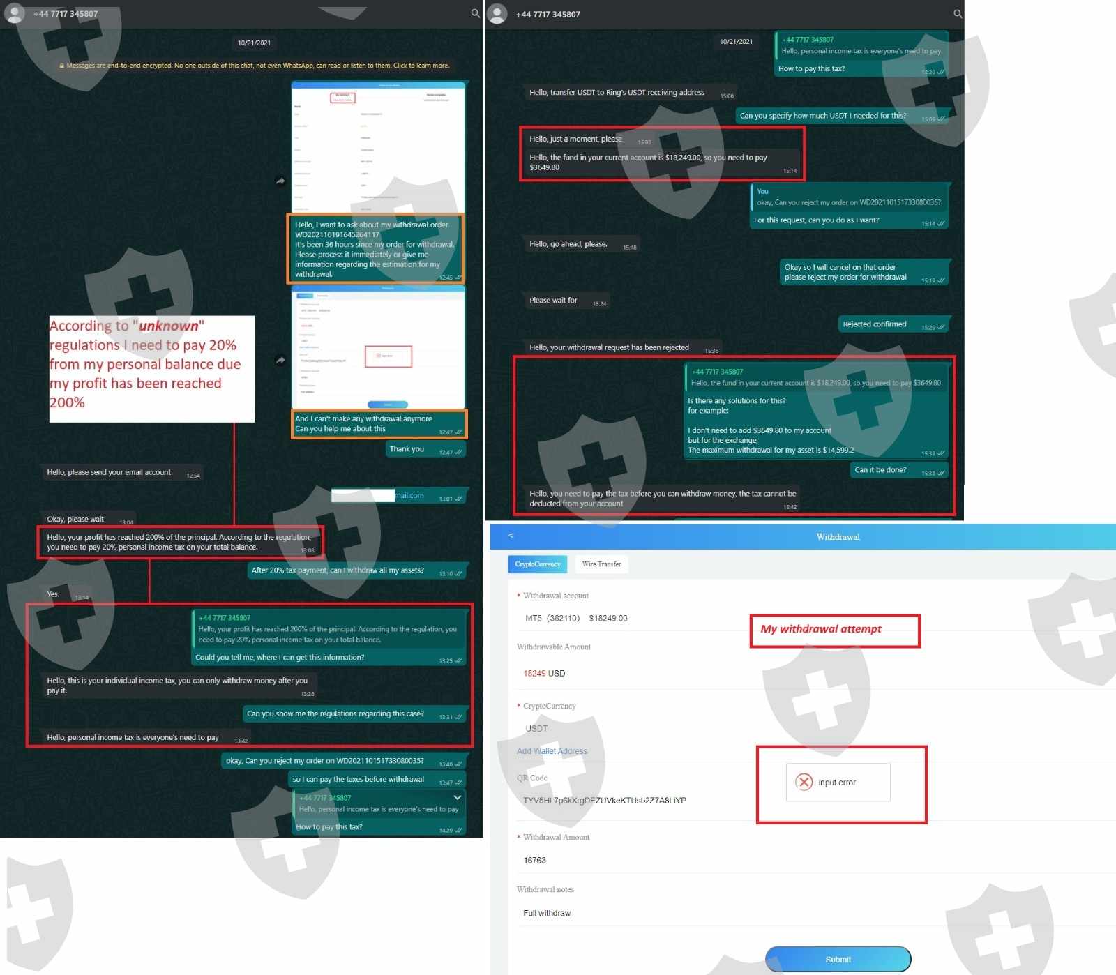 7.我需要支付总余额的20%。在他们给我这些信息后 24 小时,我的账户被冻结,我需要额外支付 500 美元才能解冻。
