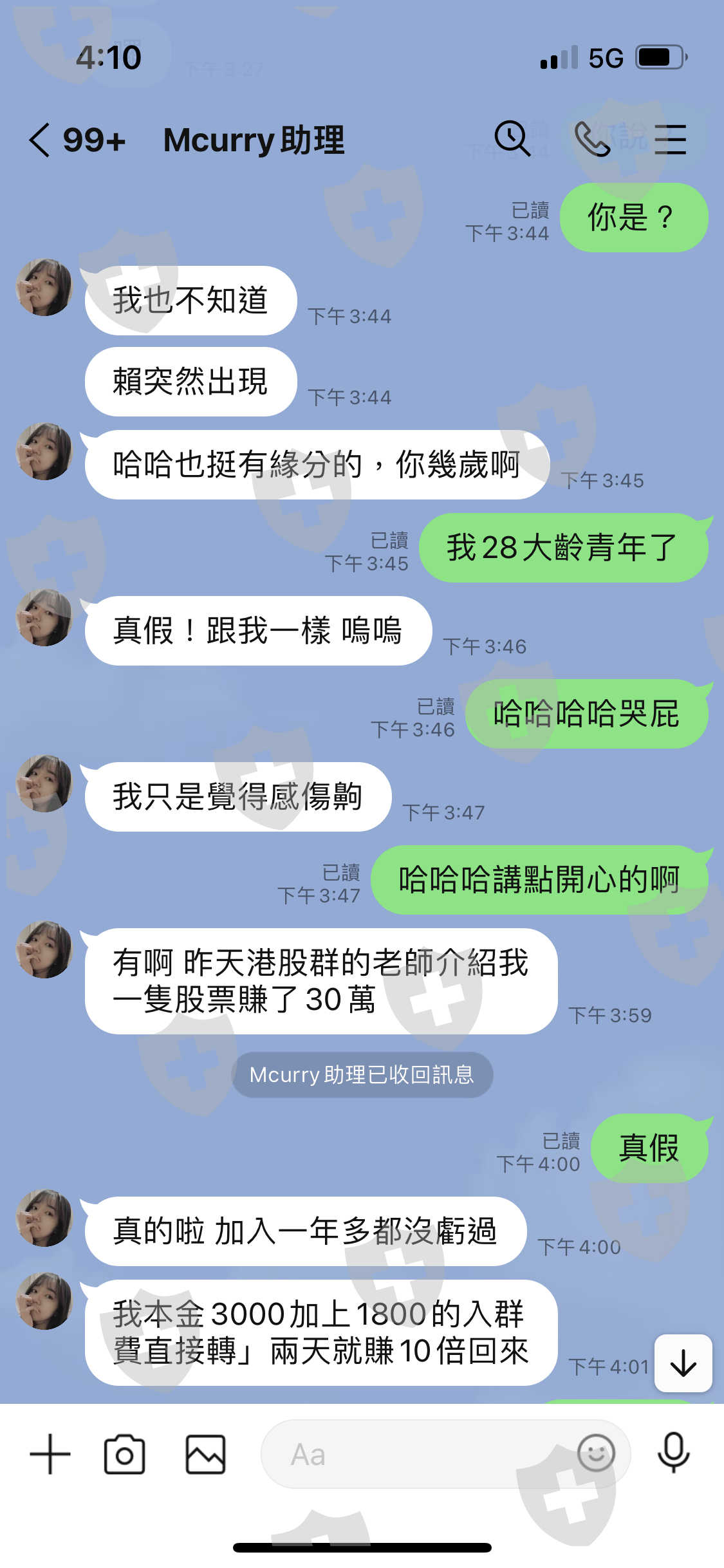 首先我一開始被不認識的好友邀請進港股群後面又說老師在帶著操作外匯讓我跟上,我也傻傻的想說有機會賺錢就試試看誰知道錢給了後去網路查發現是詐騙,趕快要求出金時客服跟網友已經不見