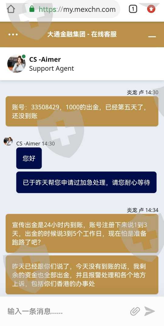无法出金,客户经理直接不回信息,客服一直说在催促,一天拖一天,账号还有5100多美金没出,之前出的1000美金还没到账。
