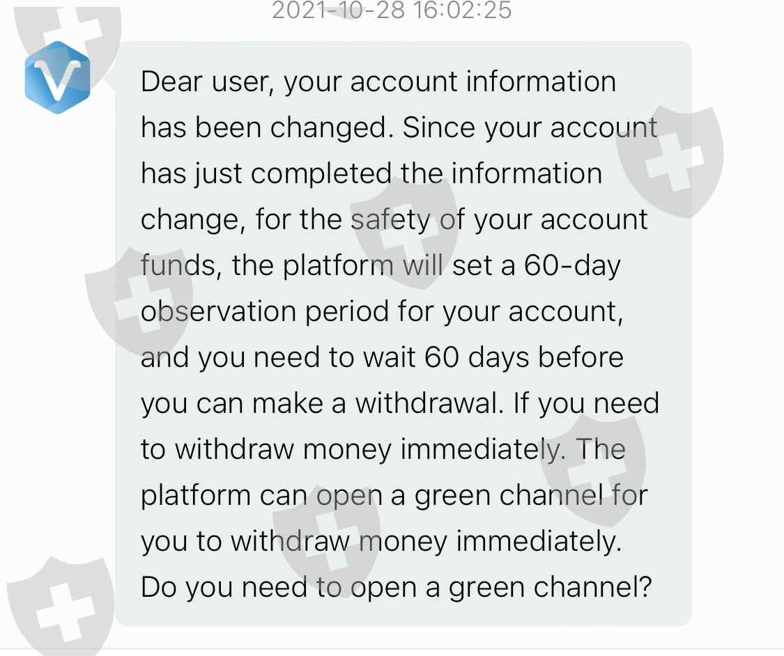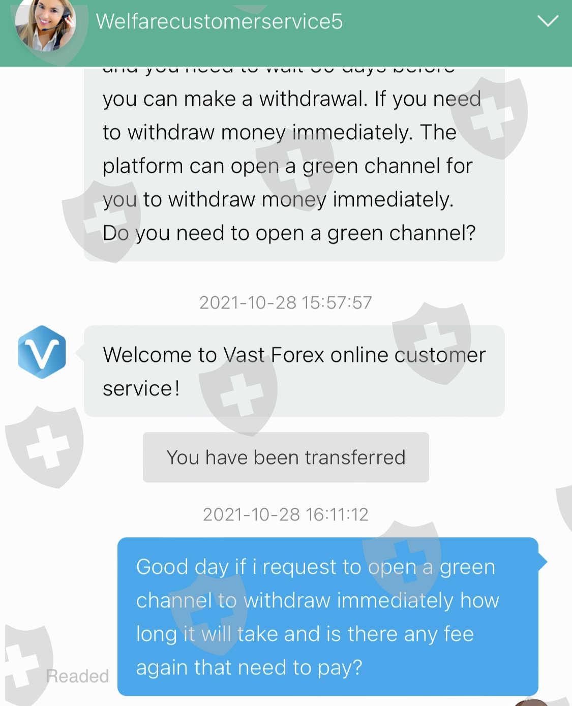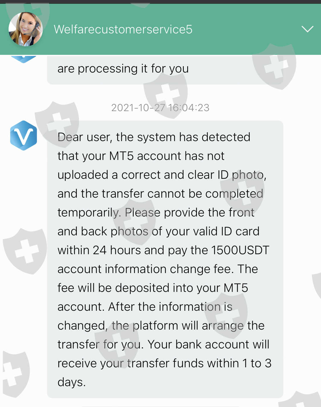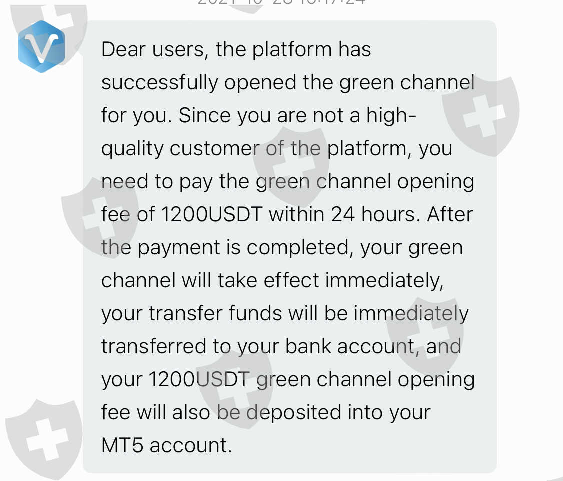 Vast forex is scam!!! I can't withdraw my fund from MT5. CS keep asking me to deposit a USDT to top up my account. at first I was able to do withdrawal until i decided to increase my fund and when i was about to withdraw the money i earned there's a lot of fees they asked (Philippines Tax Fee, International Transfer Fee, Green Channel Fee, Profile update fee). Please someone help me to get back all the money I have deposited. I don't have anymore savings.