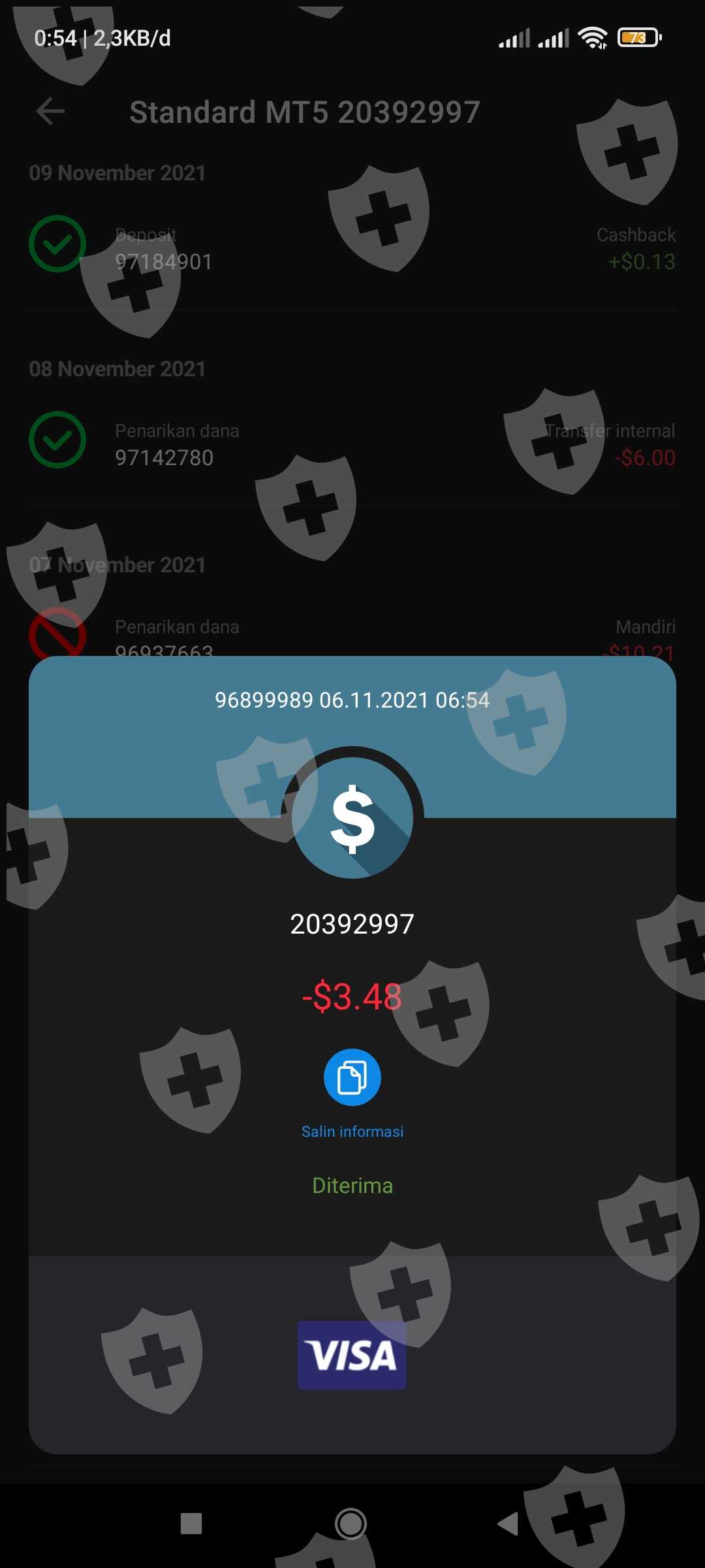 我试着出金,但钱没进到账户。