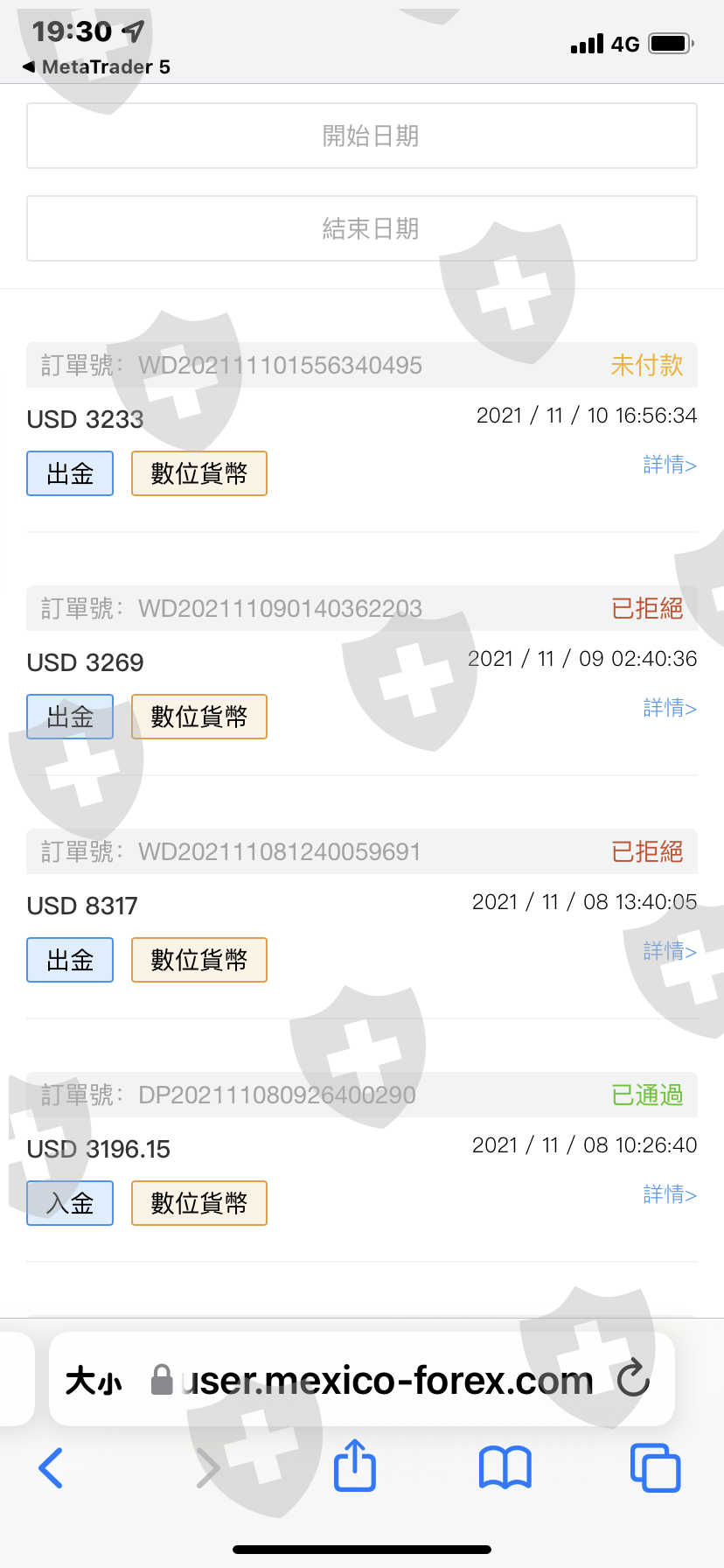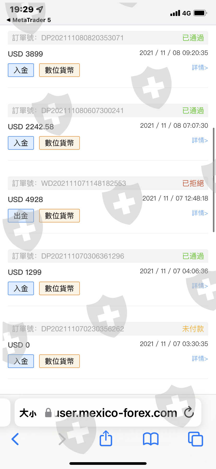 Mexico 前面一兩次少金額會順利出金讓投資者放下心房 在來就找了各種理由甚至不在回覆封鎖投資者不讓妳出金 所以不要在相信Mexico 的交易平台了 根本是一個詐騙交易商平台